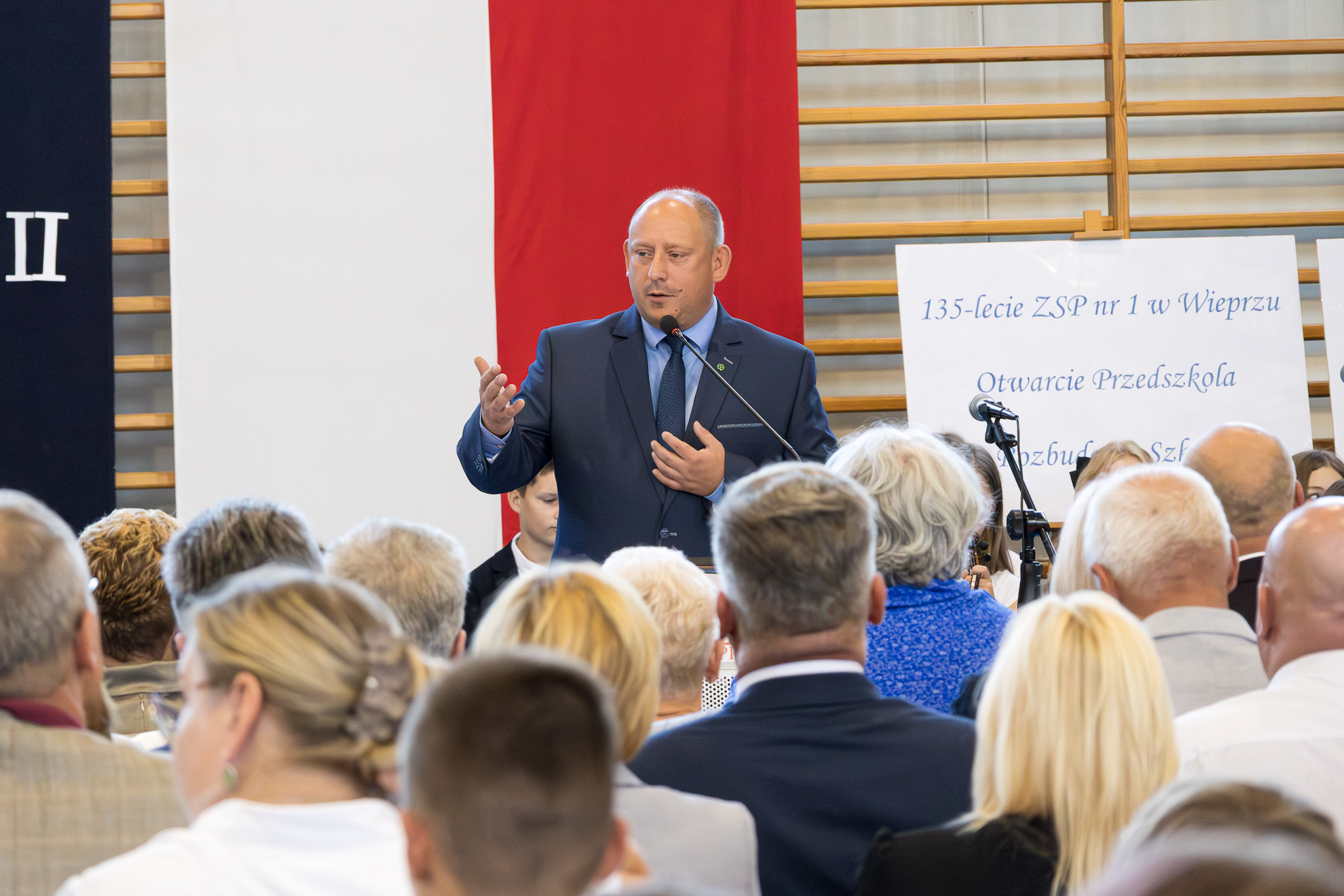 – Rozpoczęcie roku szkolnego to zawsze czas wielkich nadziei. Dzisiejsza inauguracja to dla społeczności Zespołu Szkolno-Przedszkolnego w Wieprzu wyjątkowe święto, bowiem zbiega się z aż trzema podniosłymi wydarzeniami: jubileuszem 135-lecia Szkoły, zakończeniem jej rozbudowy oraz otwarciem przedszkola. Ten nadchodzący rok będzie czasem nauki w nowoczesnej przestrzeni. Drodzy Uczniowie, życzę Wam, abyście z niekończącym się entuzjazmem odkrywali świat i odważnie podejmowali nowe zadania. Niech ten rozpoczynający się rok szkolny będzie pełen odkryć i sukcesów – mówi wojewoda małopolski Krzysztof Jan Klęczar.