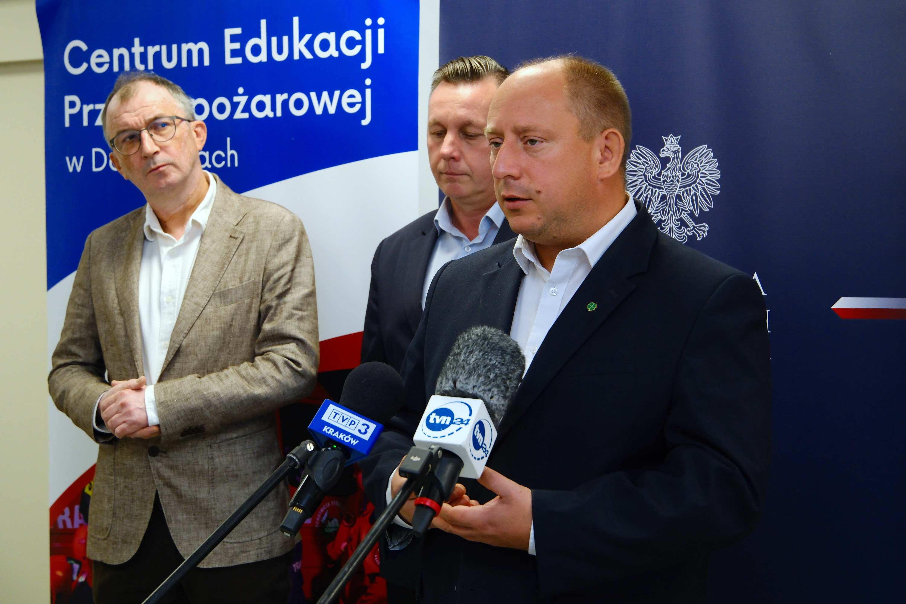 Dzisiaj w Centrum Edukacji Przeciwpożarowej w Dobczycach odbył się briefing prasowy wojewody małopolskiego dr. inż. Krzysztofa Jana Klęczara, zastępcy małopolskiego komendanta wojewódzkiego Państwowej Straży Pożarnej st. bryg. Michała Polaka poświęcony znaczeniu czujek czadu i dymu. Obecni byli także m.in.: burmistrz miasta i gminy Dobczyce Tomasz Suś oraz dyrektor do spraw medycznych Szpitala w Myślenicach dr n. med. Paweł Ślęczka.