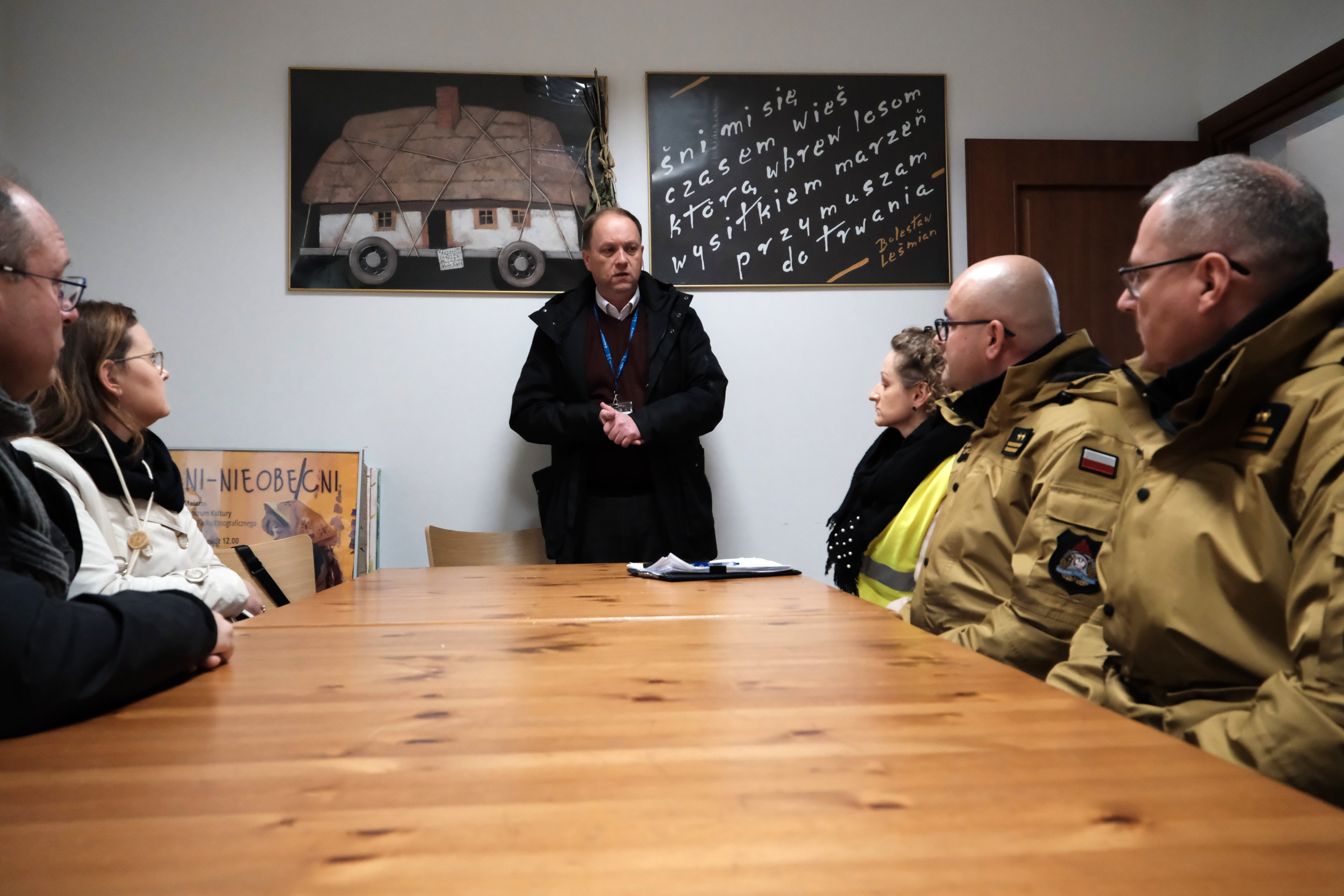 Co by było, gdyby tak cenny obiekt był zagrożony? Jakie czynności należałoby wykonać i kto byłby w nie zaangażowany? Te bardzo ważne kwestie na spotkaniu z mediami omówili: dyrektor Muzeum Ziemi Sądeckiej dr Robert Ślusarek wraz ze swoim zastępcą Sławomirem Czopem, p.o. kierownik delegatury Wojewódzkiego Urzędu Ochrony Zabytków w Nowym Sączu Patrycja Czyżycka, zastępca komendanta miejskiego Państwowej Straży Pożarnej w Nowym Sączu bryg. Konrad Gurgul oraz naczelnik Wydziału Operacyjno-Szkoleniowego KM PSP w Nowym Sączu bryg. Piotr Wysowski.