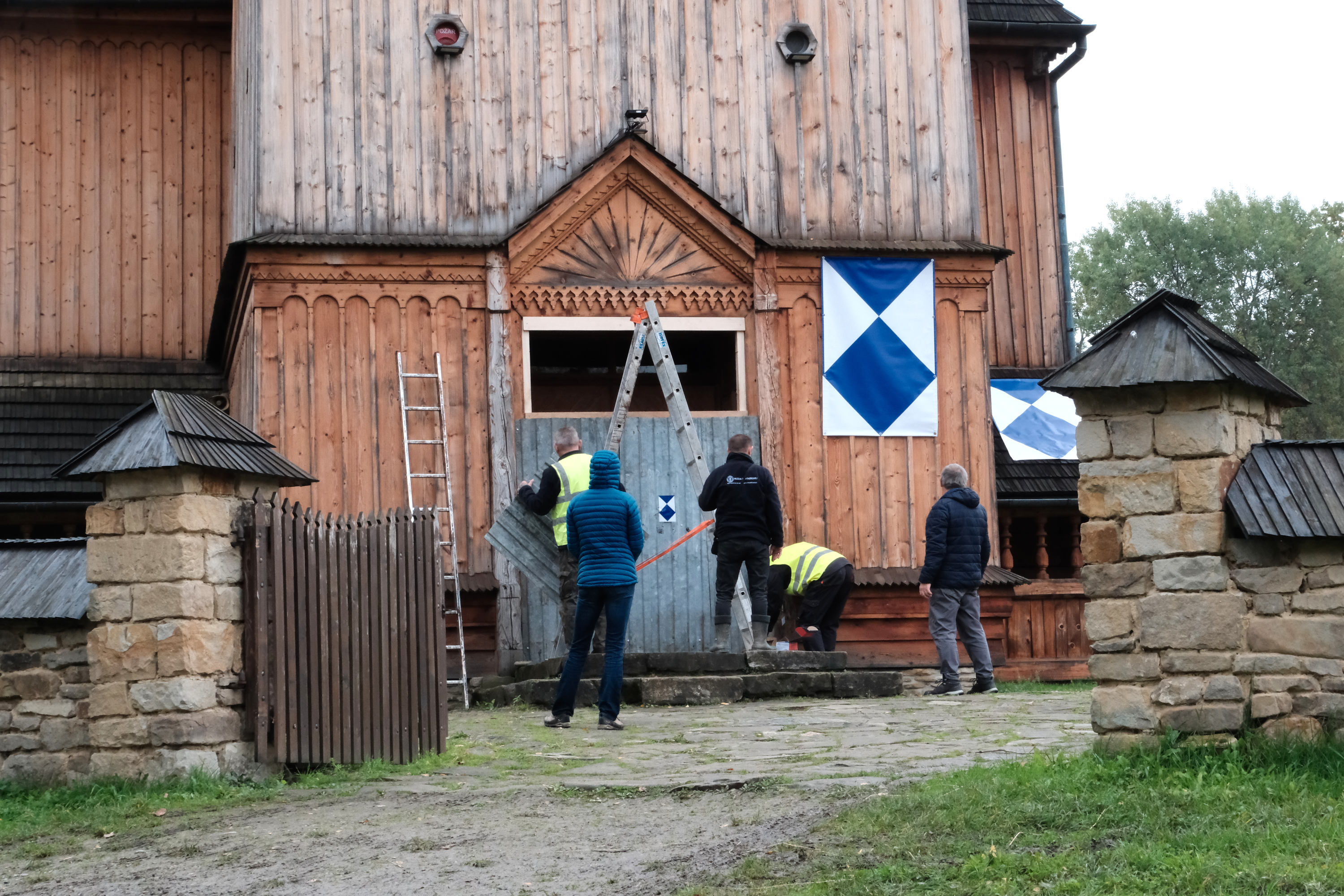 W sytuacji zagrożenia obiekt musiałby zostać w całości zabezpieczony. Rzeźby i inne elementy ruchome zostałyby starannie zapakowane w skrzynie i przewiezione w wyznaczone bezpieczne miejsce. Drzwi i okna zostałyby zabezpieczone przy użyciu desek i innych materiałów. Wszystko po to, aby w jak najszerszym zakresie ochronić zabytek – zarówno przed działaniem określonych czynników, jak i chociażby przed grabieżą.