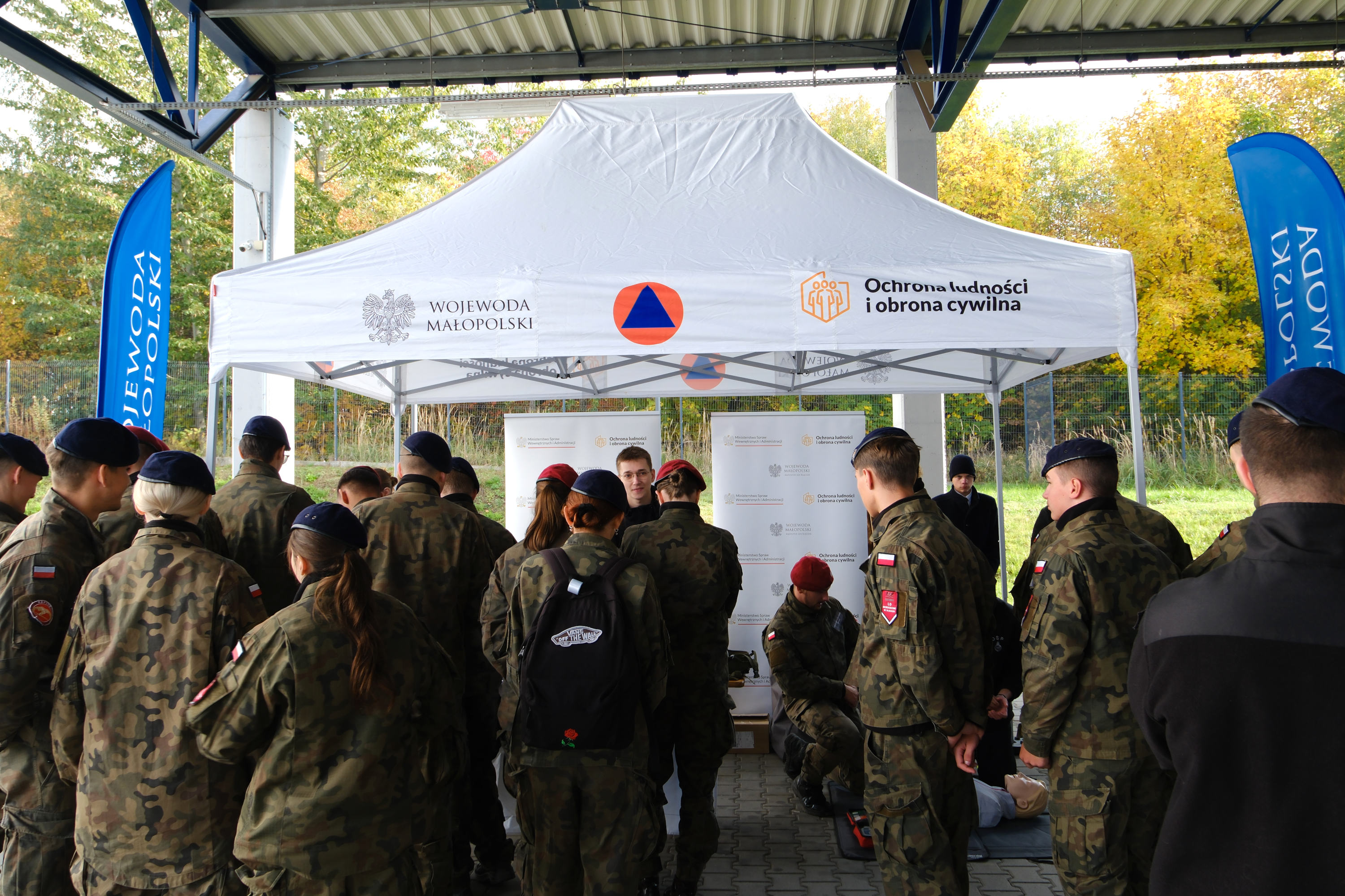 Jedno ze stoisk przygotował Sztab Młodych Mundurowych działający przy Wojewodzie Małopolskim. Jego gospodarzami byli sami uczniowie, zaś tematem przewodnim – zagadnienia związane z ochroną ludności i obroną cywilną oraz pierwszą pomocą. Uczniowie prezentowali m.in. plecak ewakuacyjny oraz „Poradnik bezpieczeństwa”. 16 października obchodzony jest Światowy Dzień Przywracania Czynności Serca, ale przypominania zasad udzielania pierwszej pomocy nigdy dość.
