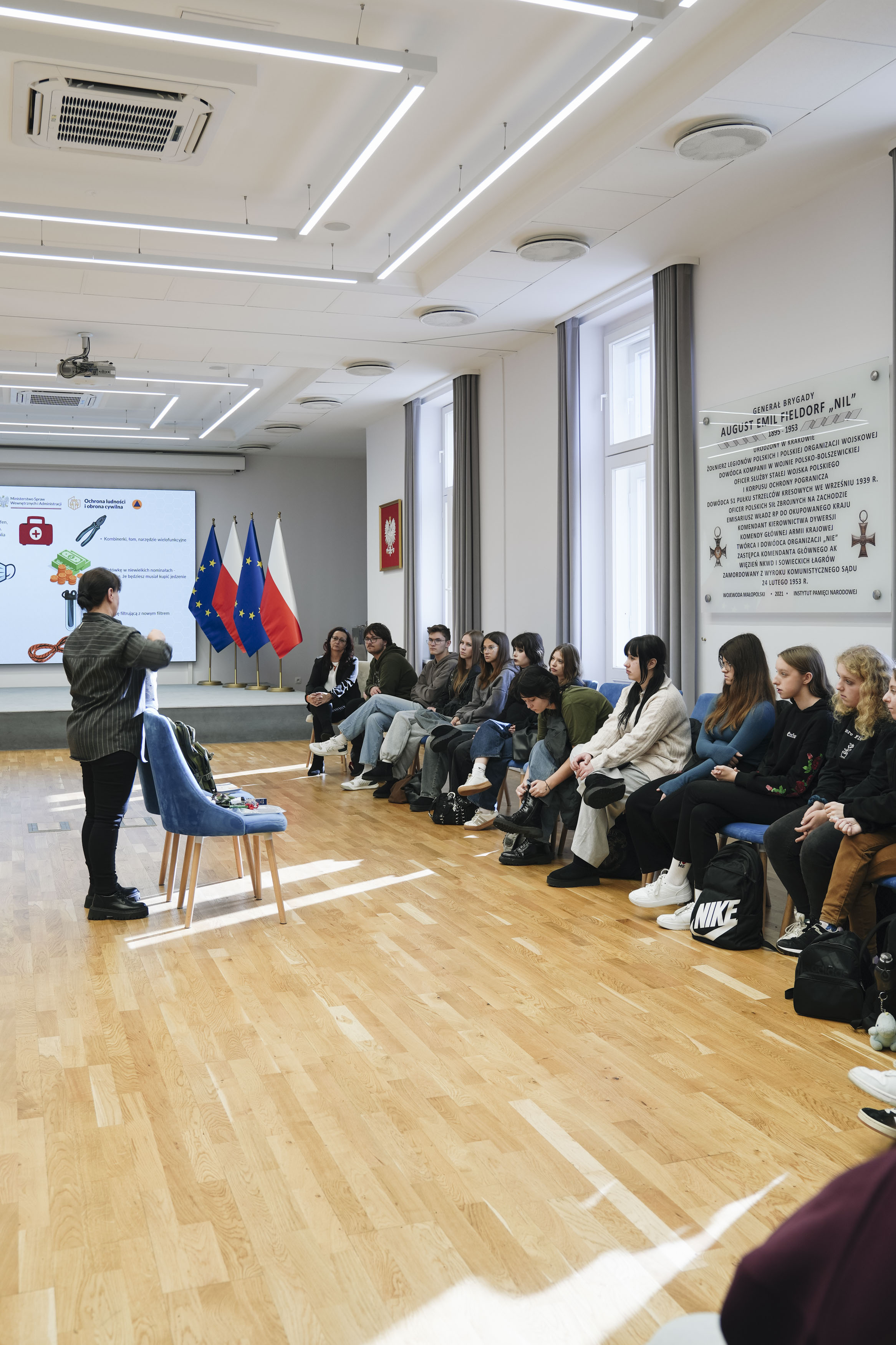 W lekcji udział wziął także przedstawiciel Wydziału Bezpieczeństwa i Zarządzania Kryzysowego MUW Kraków, który przybliżył uczniom zagadnienia z zakresu ochrony ludności i obrony cywilnej.