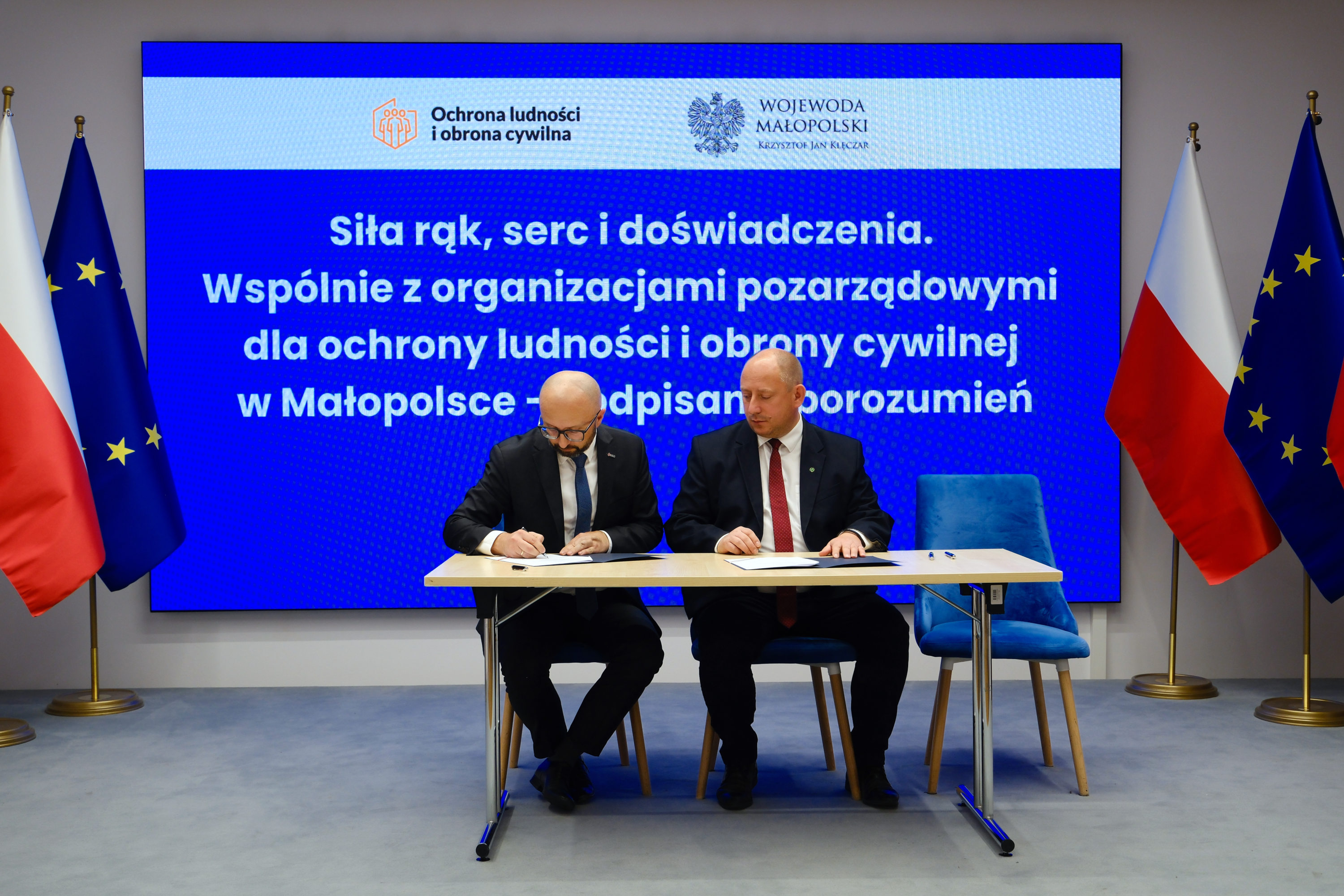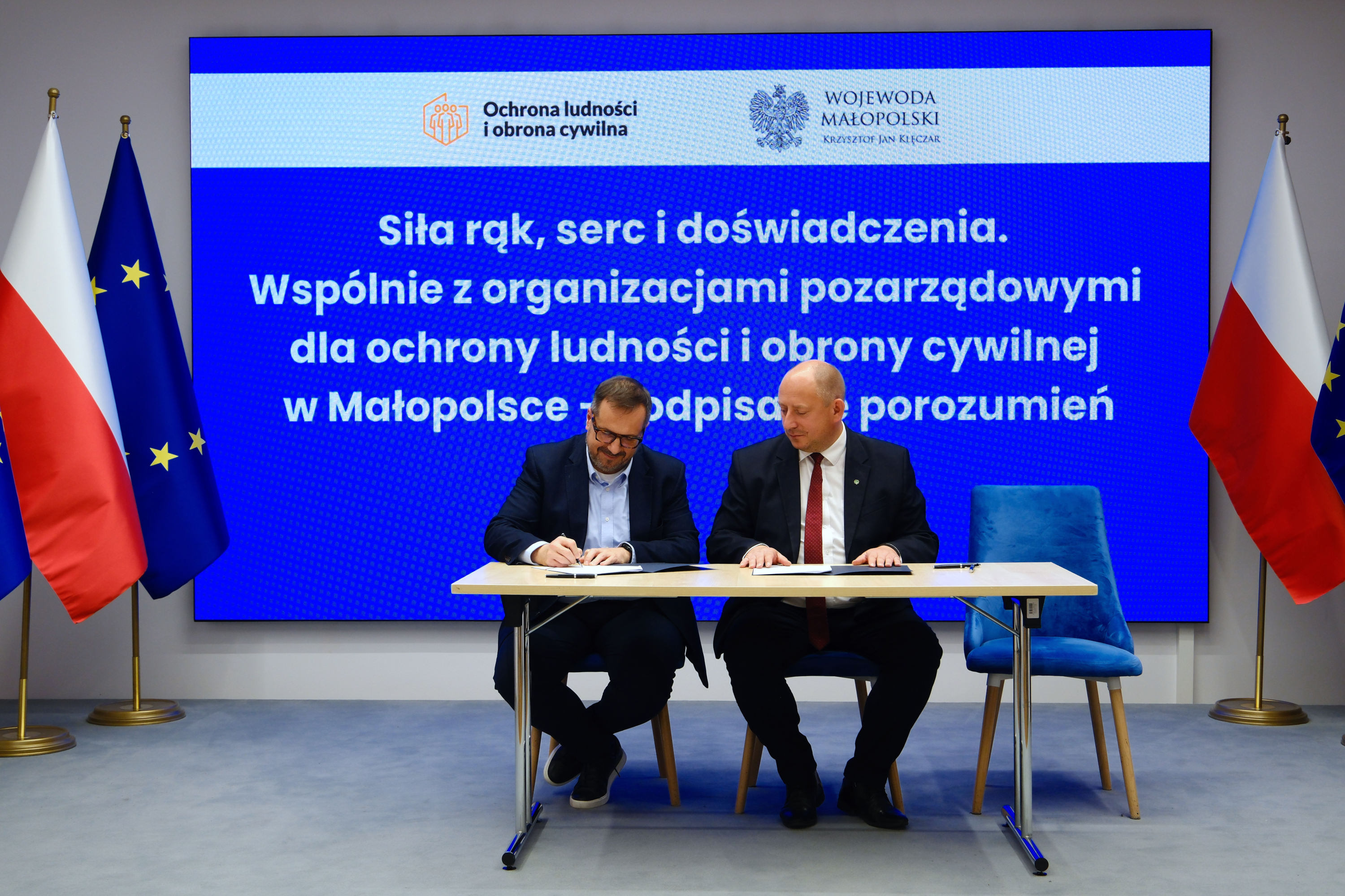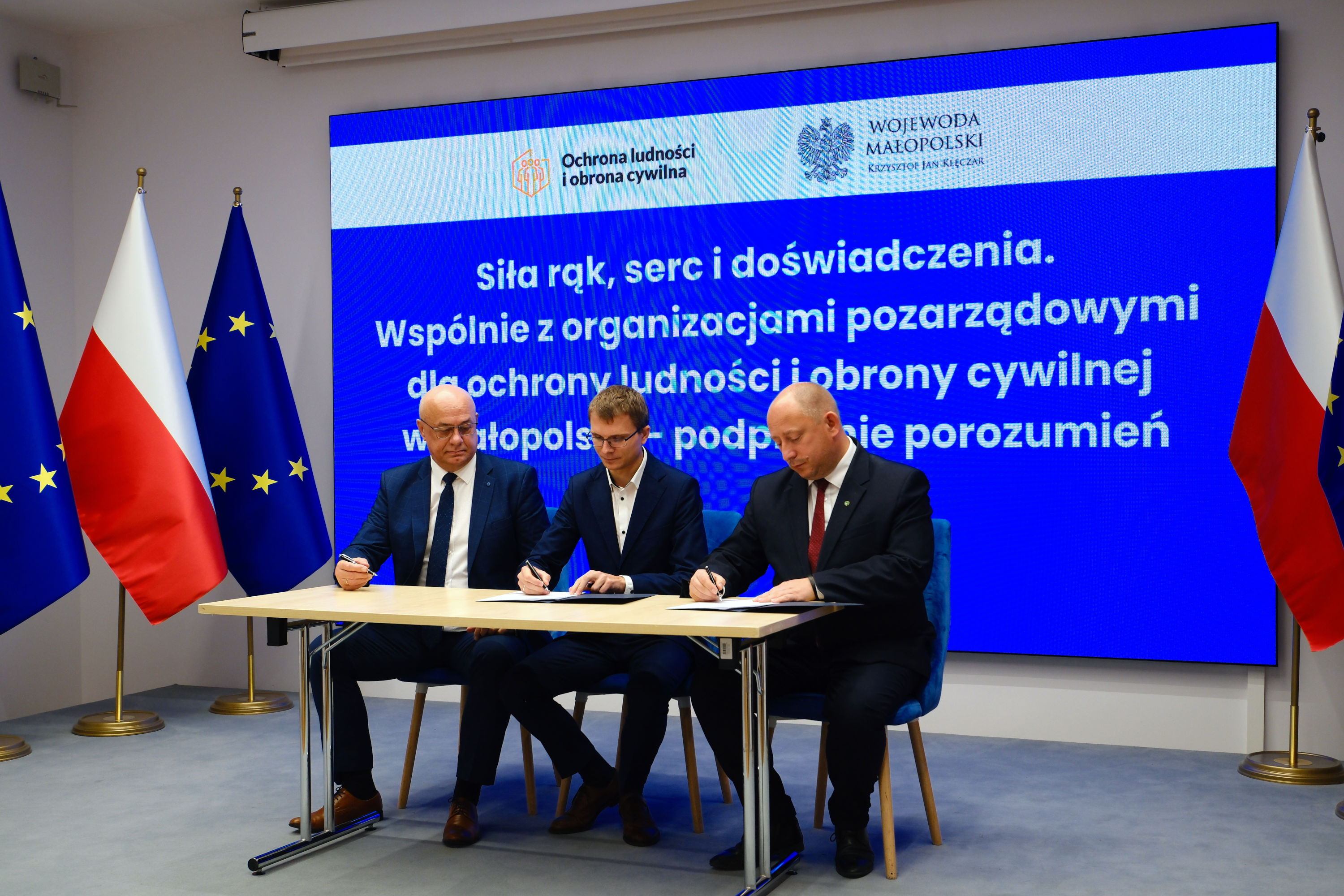 Dzisiaj w Małopolskim Urzędzie Wojewódzkim w Krakowie wojewoda małopolski Krzysztof Jan Klęczar podpisał porozumienia o wykonywaniu zadań z zakresu ochrony ludności i obrony cywilnej z organizacjami pozarządowymi.