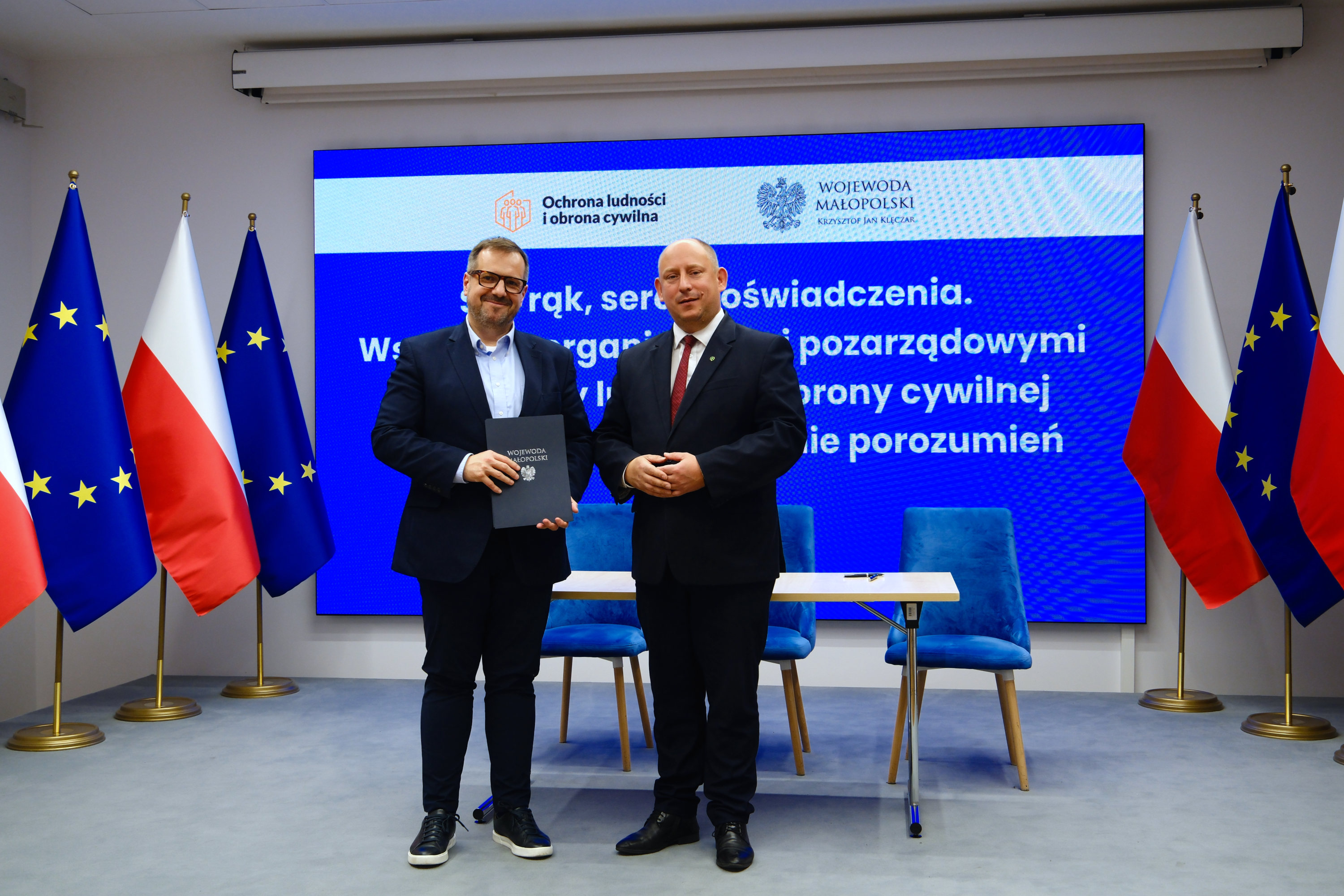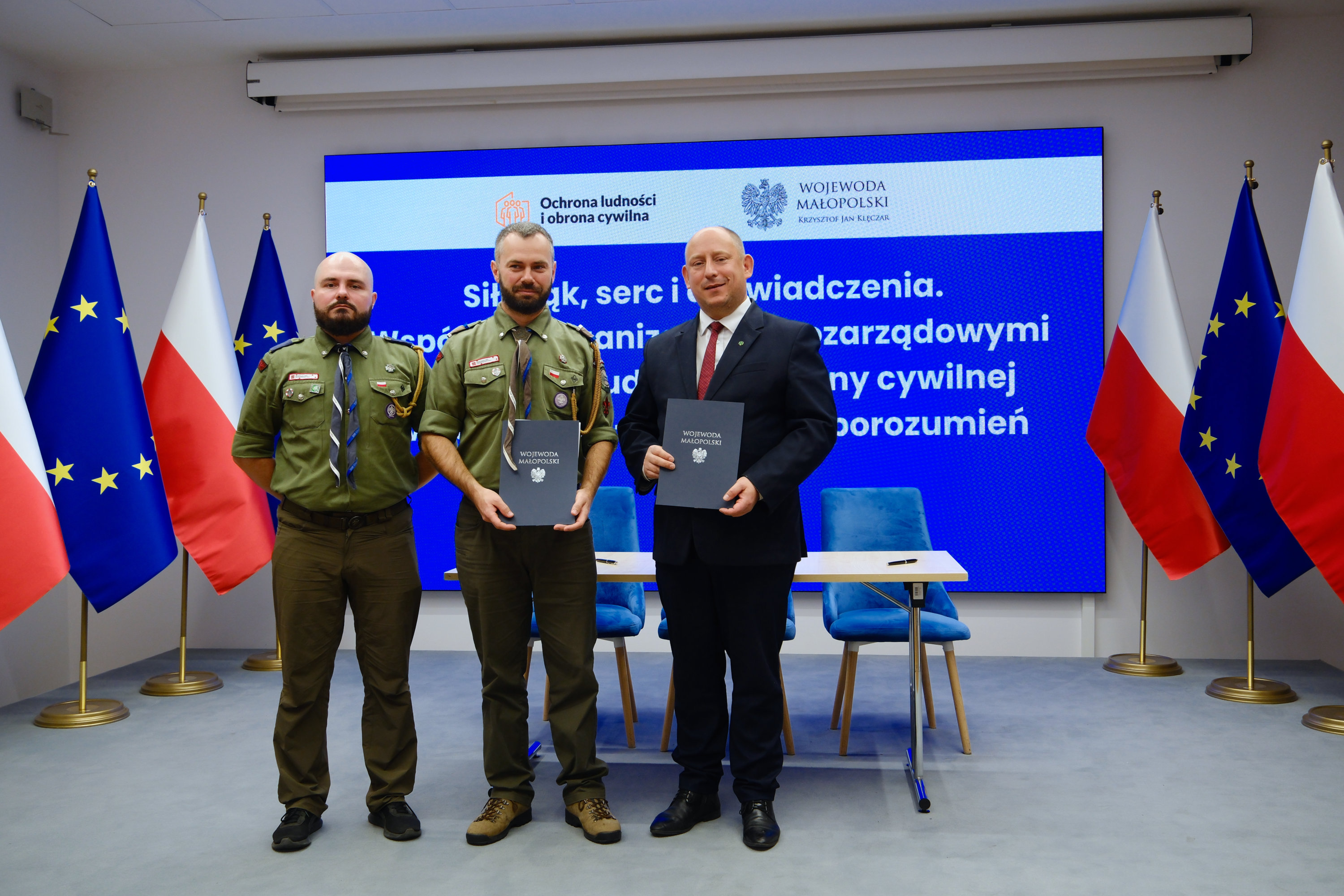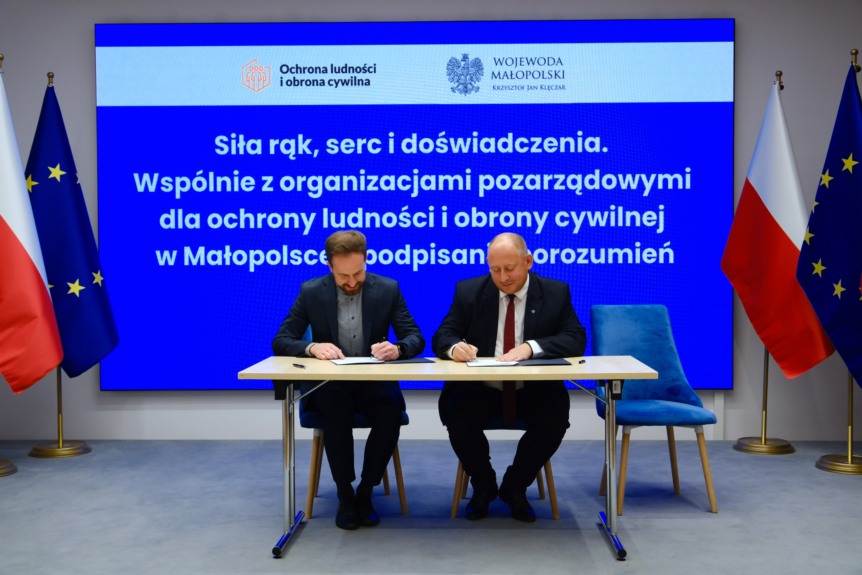 Dzisiaj w Małopolskim Urzędzie Wojewódzkim w Krakowie wojewoda małopolski Krzysztof Jan Klęczar podpisał porozumienia o wykonywaniu zadań z zakresu ochrony ludności i obrony cywilnej z organizacjami pozarządowymi.