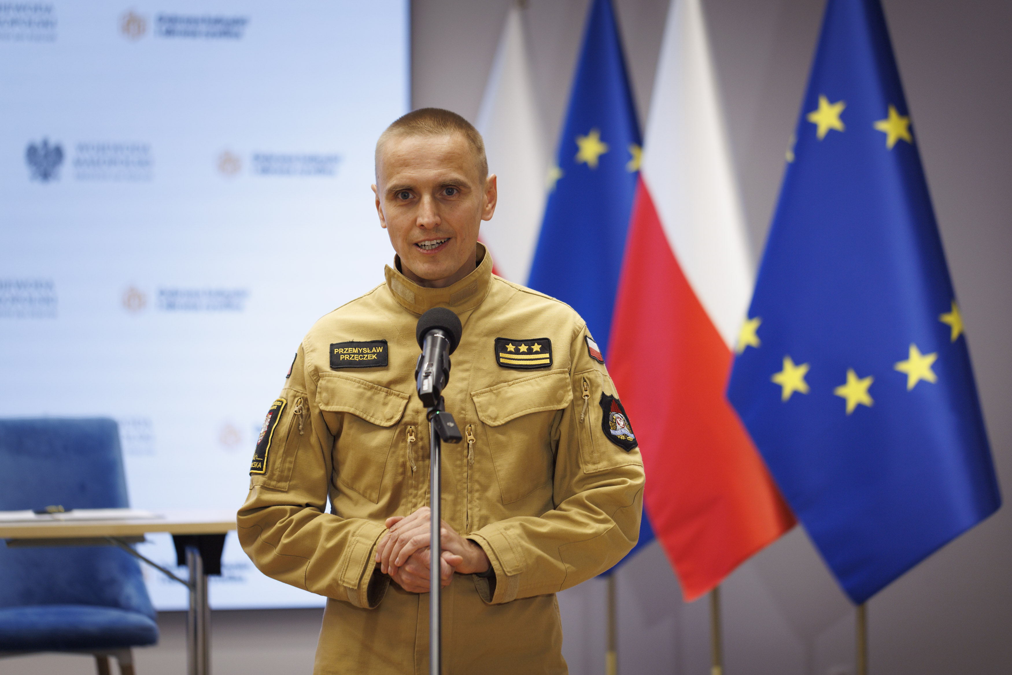 – Jednostki ochrony przeciwpożarowej na terenie województwa małopolskiego od samego początku wejścia w życie ustawy o ochronie ludności i obronie cywilnej bardzo intensywnie wspierają organy ochrony ludności w realizacji ich ustawowych zadań. Również w zakresie alarmowania i ostrzegania ludności o zagrożeniach chcemy wnieść swój wkład. Wychodzimy z potencjałem 1390 syren alarmowych, które zamontowane są w jednostkach ochrony przeciwpożarowej na terenie całego województwa małopolskiego. Dzisiejsze porozumienie to przygotowanie do tego, co Państwowa Straż Pożarna w skali kraju buduje od początku tego roku. W ramach Krajowego Planu Odbudowy budujemy system SOiA, czyli System Ostrzegania i Alarmowania ludności o zagrożeniach. Ten system w województwie małopolskim jest już przygotowany, trwają ostatnie prace związane z tym, aby go scentralizować i usieciować, tak abyśmy od przyszłego roku mogli już bezpiecznie z niego korzystać – mówi małopolski komendant wojewódzki Państwowej Straży Pożarnej st. bryg. Przemysław Przęczek.