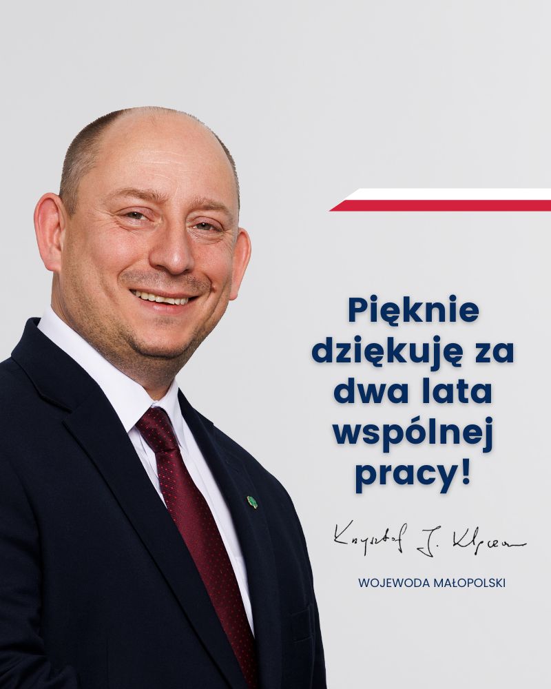 – Mijają właśnie dwa lata, od kiedy objąłem funkcję Wojewody Małopolskiego - tak dla mnie ważną i zaszczytną. Bo to wielka duma pracować dla Was i z Wami. Żyć Waszymi sprawami. Realizować politykę rządu w terenie, współpracować z samorządami, koordynować pracę małopolskich służb, inspekcji i straży. Dziękuję za dotychczasową współpracę. Robimy, nie gadamy. Cel jest jasny. Rozwój w regionach. Zapewnienie Wam bezpieczeństwa, z akcentem na tworzenie systemu ochrony ludności i obrony cywilnej. I to, co jest dla mnie tak istotne: budowanie mostów, a nie murów, niedzielenie, osiąganie porozumień i niewykluczanie, zdrowy rozsądek i umiar. Jeszcze raz pięknie dziękuję za te dwa lata! – mówi wojewoda małopolski Krzysztof Jan Klęczar.