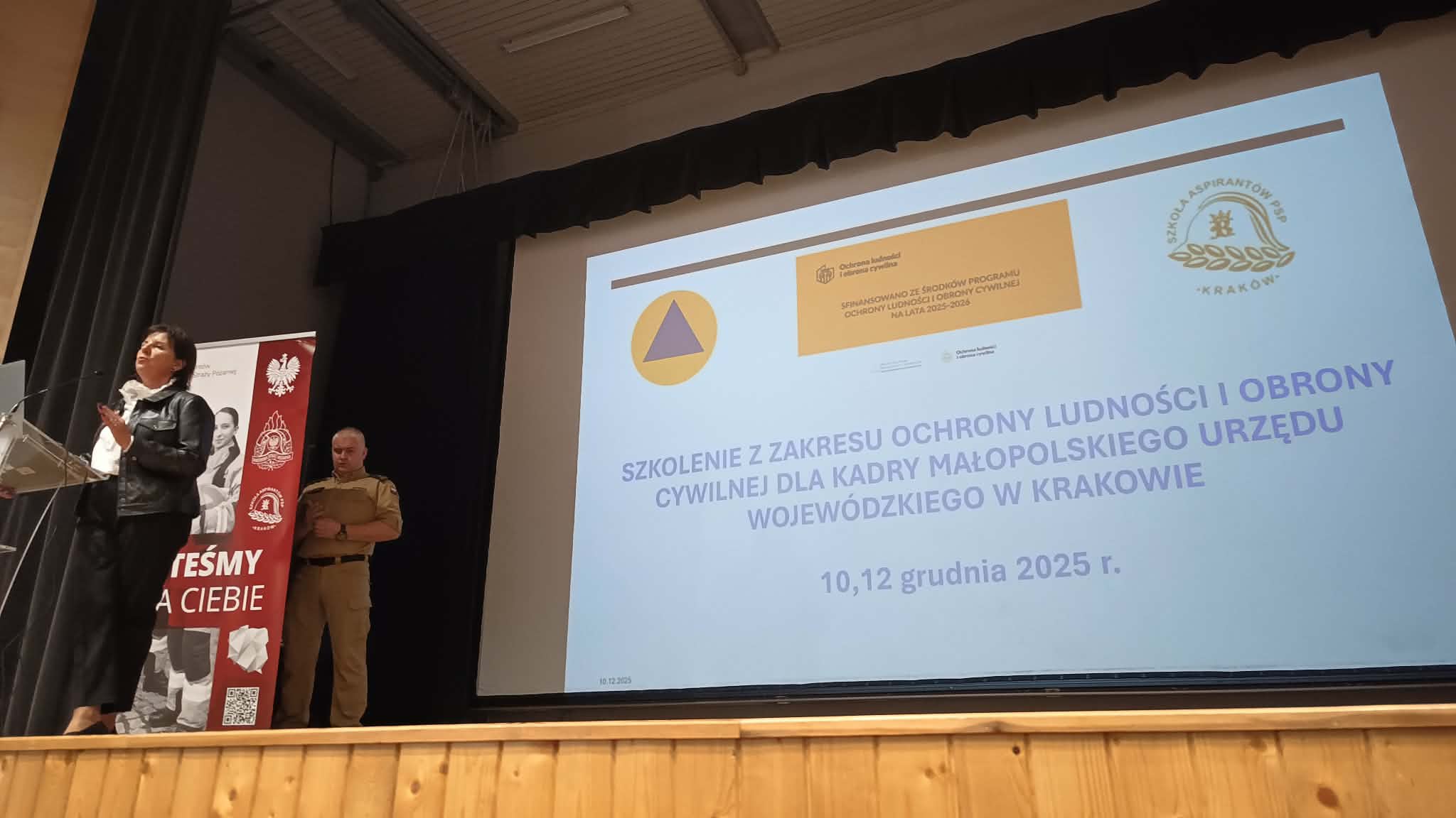 Funkcjonowanie administracji w stanach nadzwyczajnych, ochrona infrastruktury krytycznej, organizacja i prowadzenie ewakuacji, środki zbiorowej i indywidualnej ochrony, sygnały alarmowe, plecak ewakuacyjny, alternatywne źródła energii… To tylko niektóre z zagadnień poruszonych podczas dwudniowego szkolenia zasadniczego z zakresu ochrony ludności i obrony cywilnej dla kadry Małopolskiego Urzędu Wojewódzkiego w Krakowie.