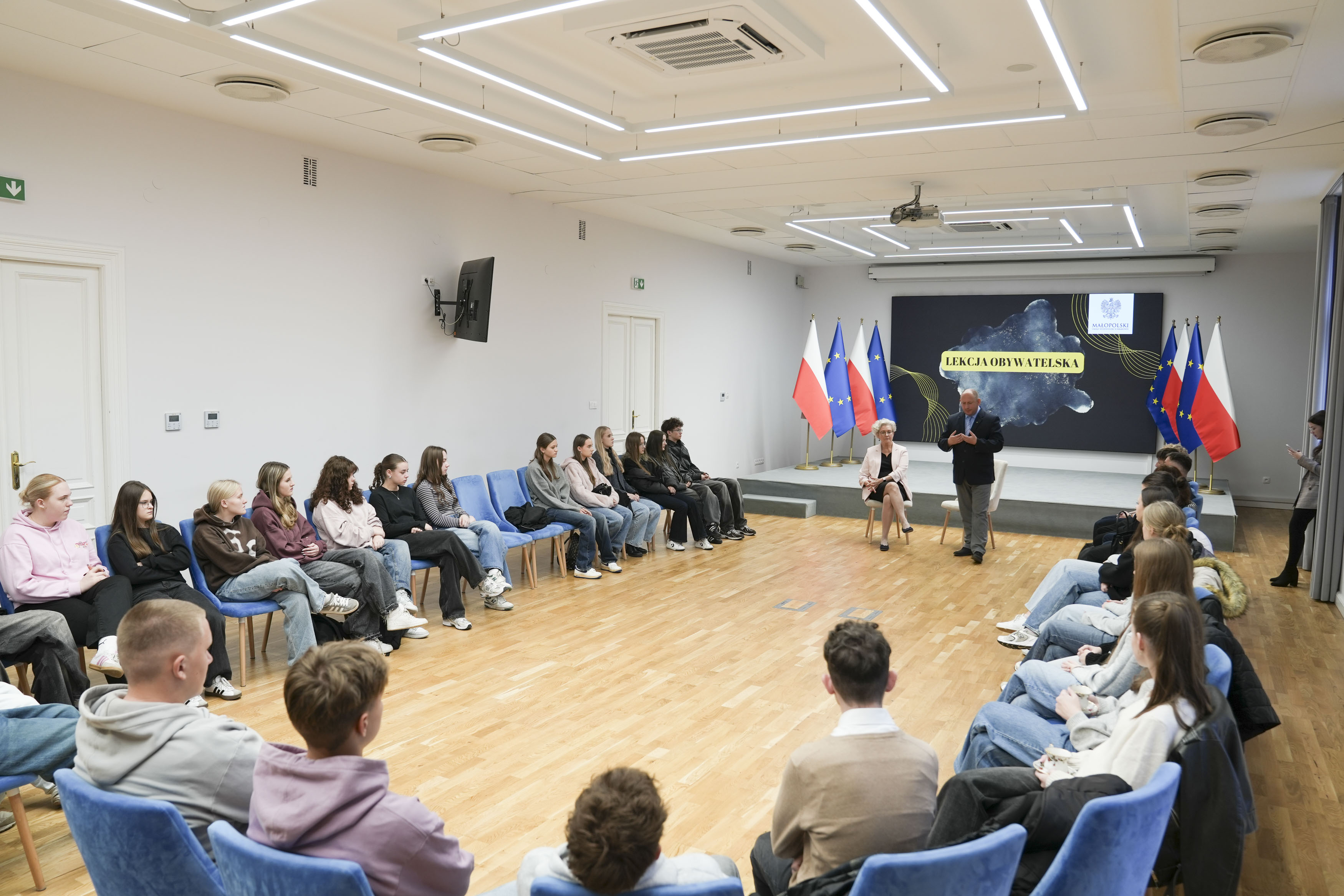 – Dzięki dzisiejszej lekcji obywatelskiej możecie się dowiedzieć, jakie realizujemy zadania. Administracja publiczna to przede wszystkim ludzie. To mechanizm, który działa dzięki różnym wydziałom składającym się na Urząd Wojewódzki. Cieszę się, że możemy się dziś lepiej poznać. Taką okazją są nasze lekcje obywatelskie – mówi wojewoda małopolski Krzysztof Jan Klęczar.
