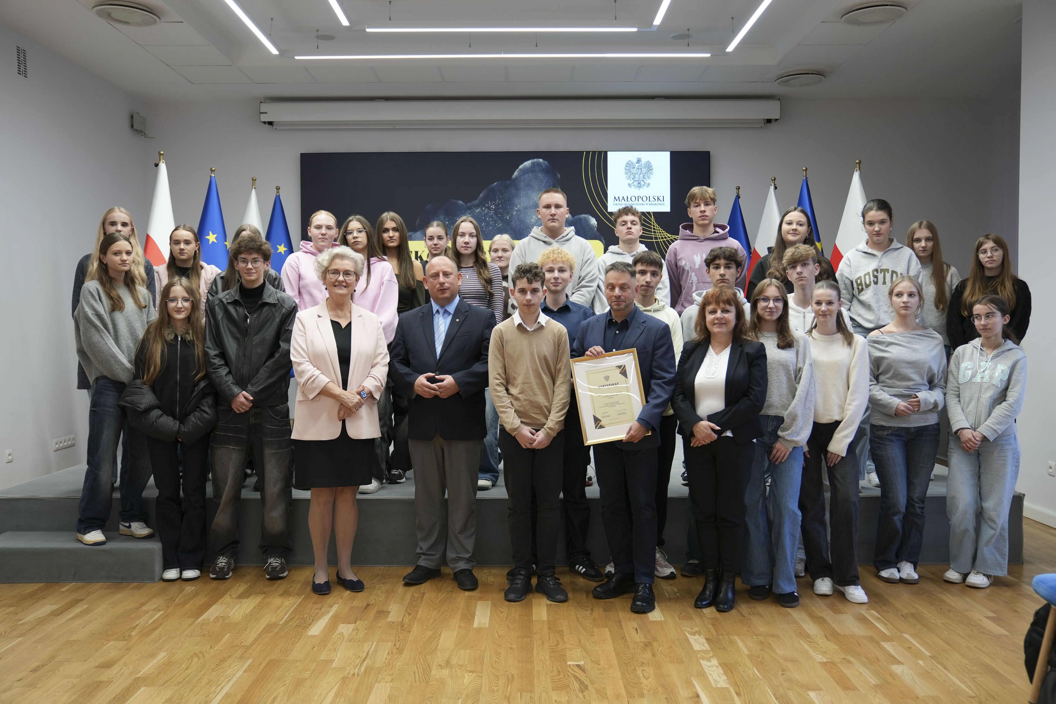 Uczniowie I Liceum Ogólnokształcącego im. Mikołaja Kopernika w Brzesku wraz z nauczycielami gościli w Małopolskim Urzędzie Wojewódzkim w Krakowie na lekcji obywatelskiej. Spotkali się z nimi wojewoda małopolski Krzysztof Jan Klęczar oraz I wicewojewoda małopolska Elżbieta Achinger. Była to doskonała okazja, aby młodzi ludzie zapoznali się z funkcjonowaniem administracji publicznej.