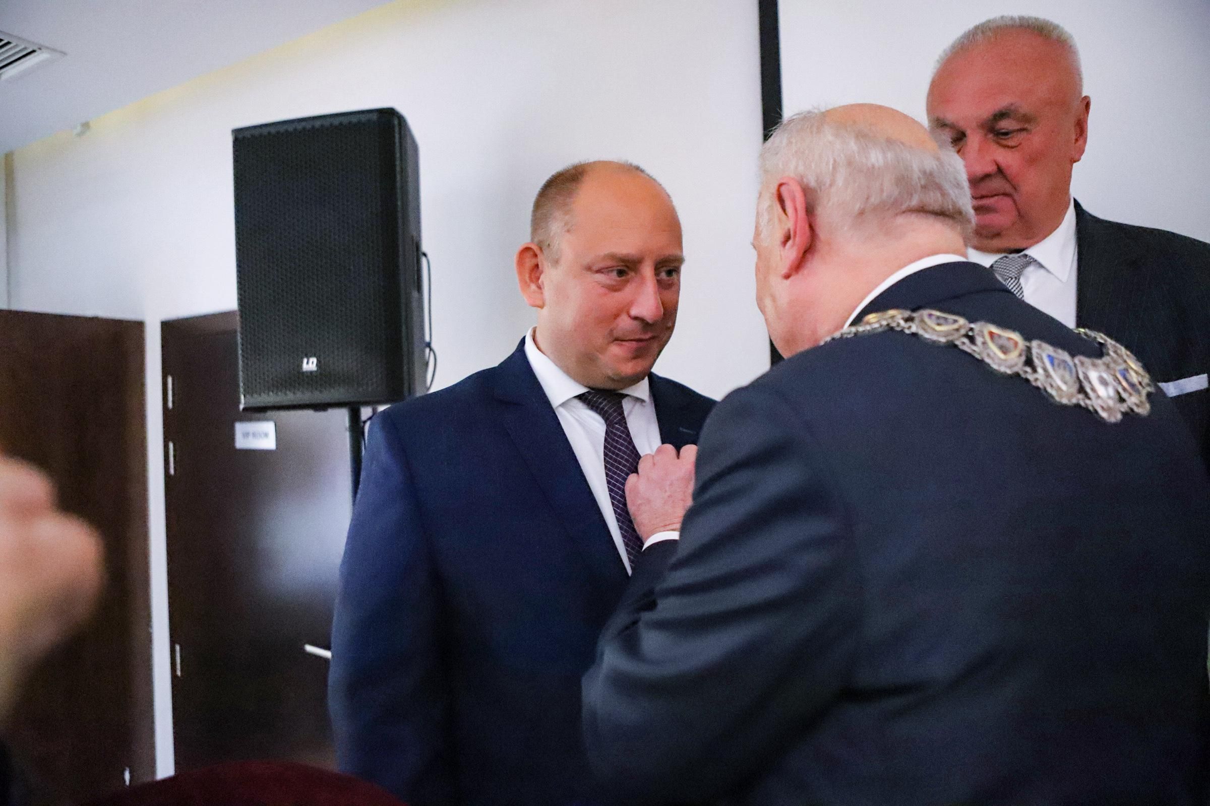 40-lecie Izby Rzemieślniczej oraz Małej i Średniej Przedsiębiorczości w Tarnowie. Na zdjęciu wojewoda małopolski Krzysztof Jan Klęczar oraz inni odznaczeni i zaproszeni goście