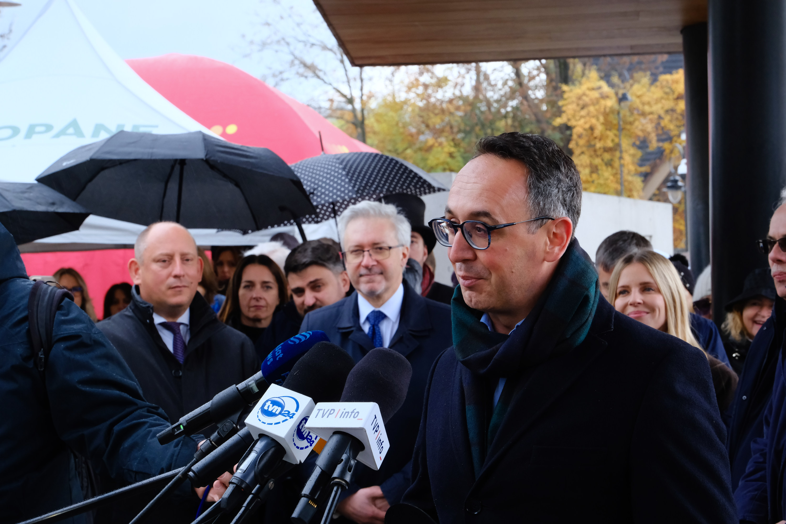 Inauguracja pierwszego kursu pendolino do Zakopanego. Na wojewoda małopolski Krzysztof Jan Klęczar, minister infrastruktury Dariusz Klimczak oraz burmistrz Zakopanego Łukasz Filipowicz