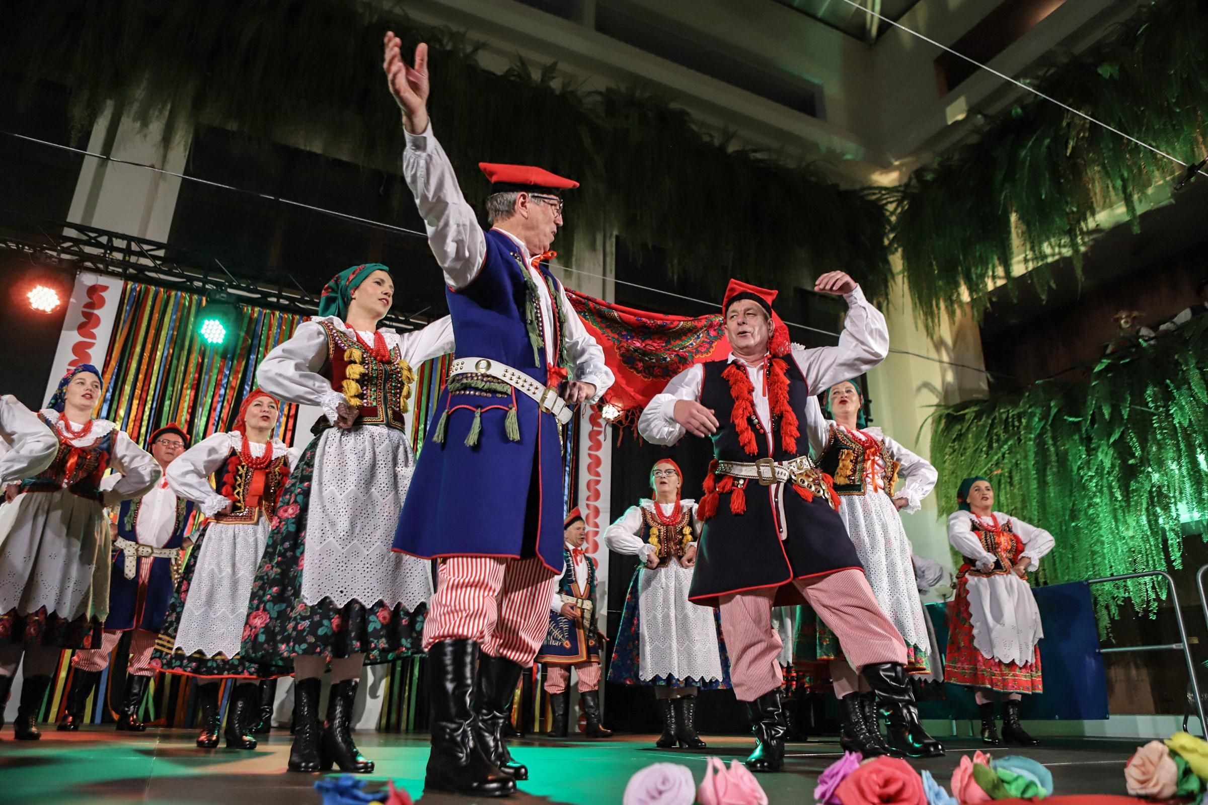 Występ zespołu Swojacy. Na zdjęciu wojewoda małopolski Krzysztof Jan Klęczar wraz z przedstawicielem zespołu trzymającym ramę