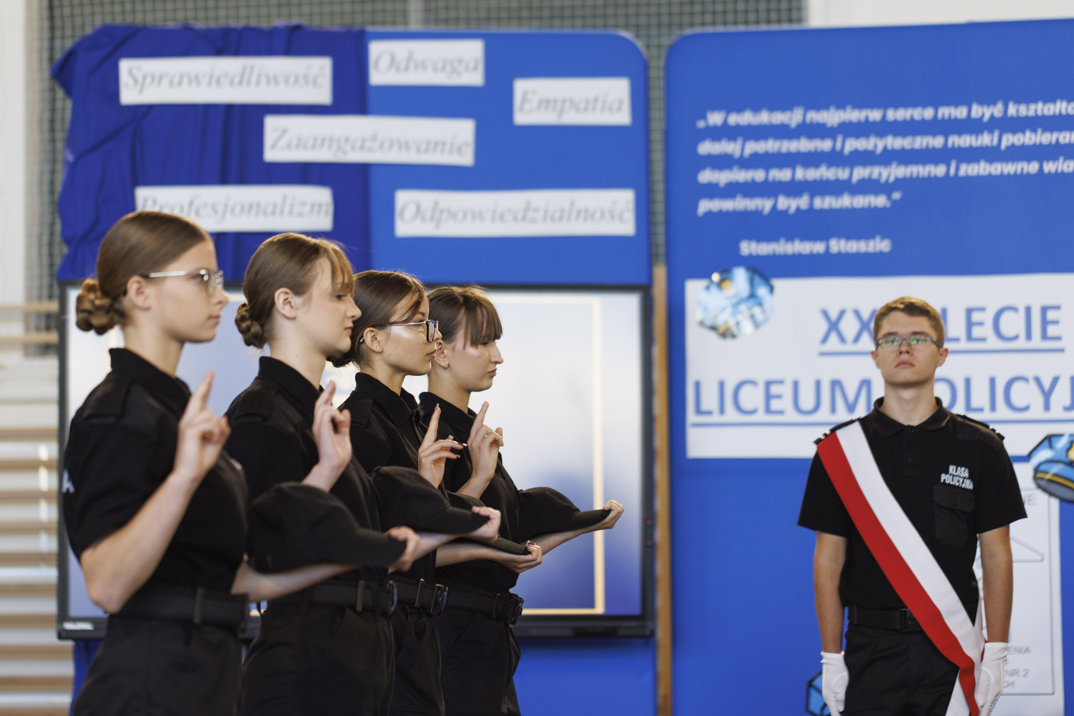 Wydarzenie było okazją do podsumowania dwóch dekad współpracy szkoły z Policją i podziękowania wszystkim, którzy wspierają edukację młodych ludzi chcących wybrać ścieżkę służby w imię dewizy: "Pomagamy i chronimy".
