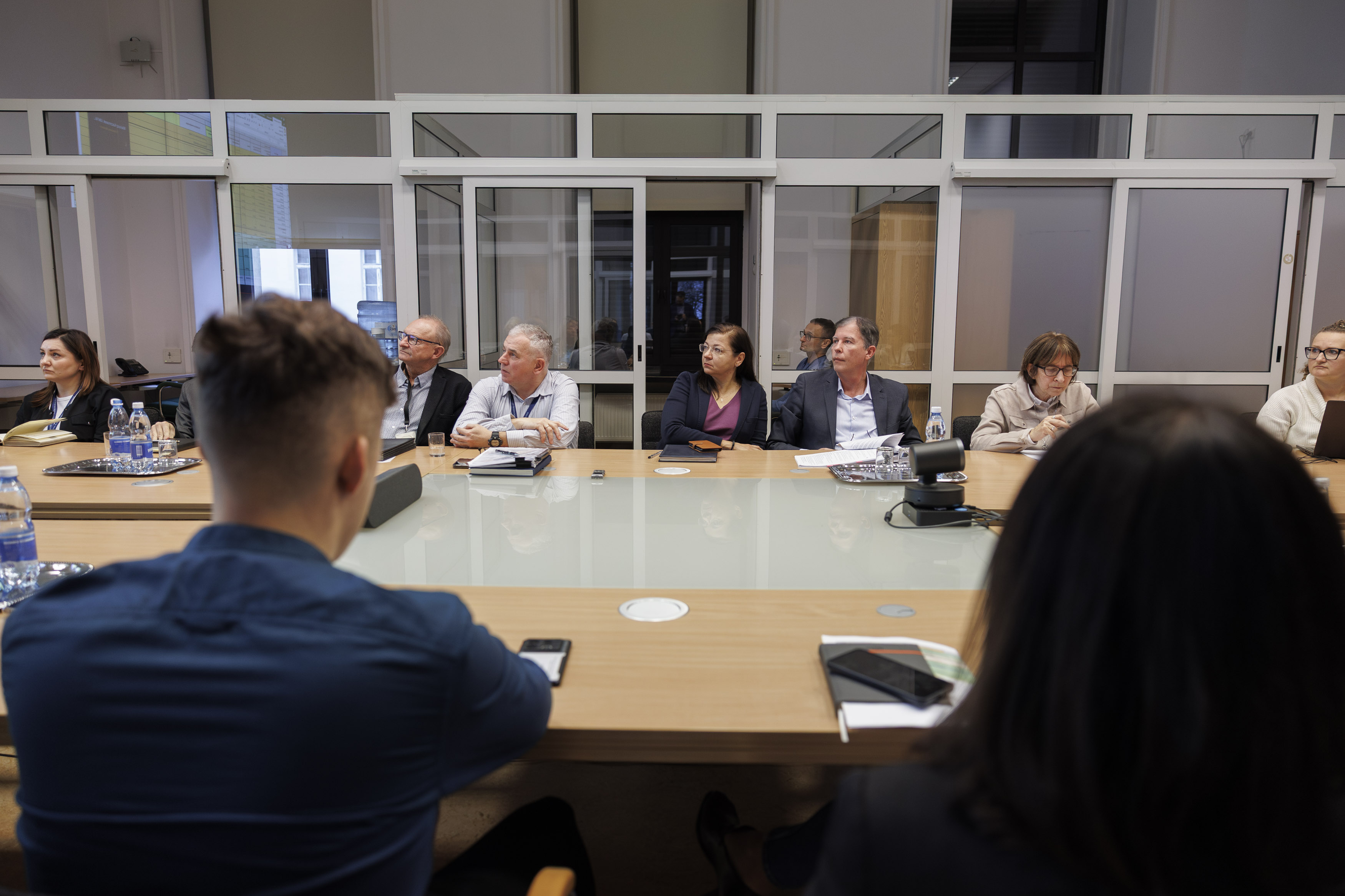 Opiniowanie wniosków w ramach Programu Ochrony Ludności i Obrony Cywilnej. Na zdjęciu uczestnicy podczas spotkania oraz zestawienie wniosków na ekranie