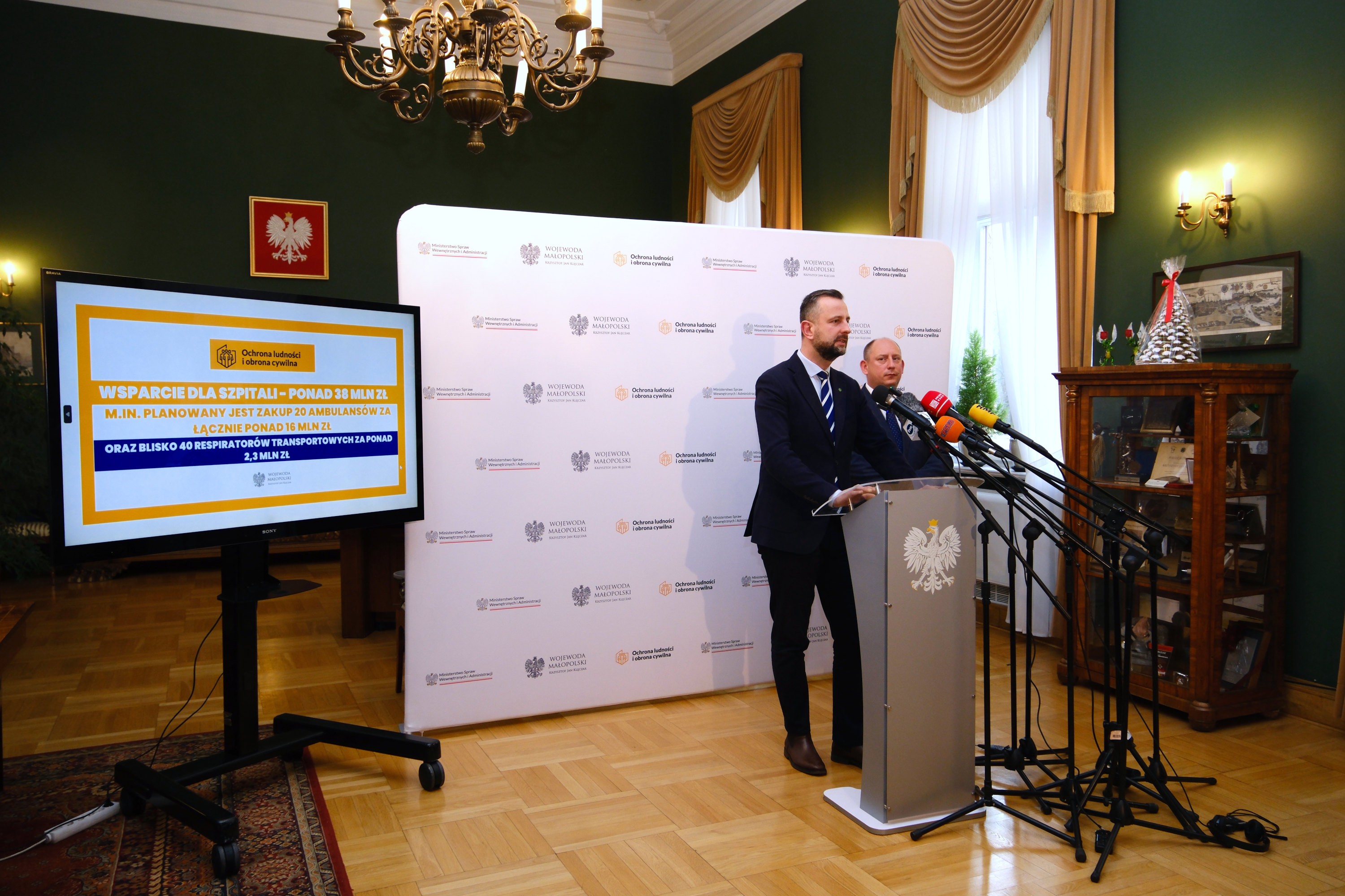 W Małopolskim Urzędzie Wojewódzkim w Krakowie odbył się dziś briefing prasowy wicepremiera, ministra obrony narodowej Władysława Kosiniaka-Kamysza oraz wojewody małopolskiego Krzysztofa Jana Klęczara. Tematami przewodnimi była realizacja w Małopolsce Programu Ochrony Ludności i Obrony Cywilnej oraz m.in. planowana modernizacja linii kolejowej nr 115 Tarnów-Szczucin, tzw. „Szczucinki”.