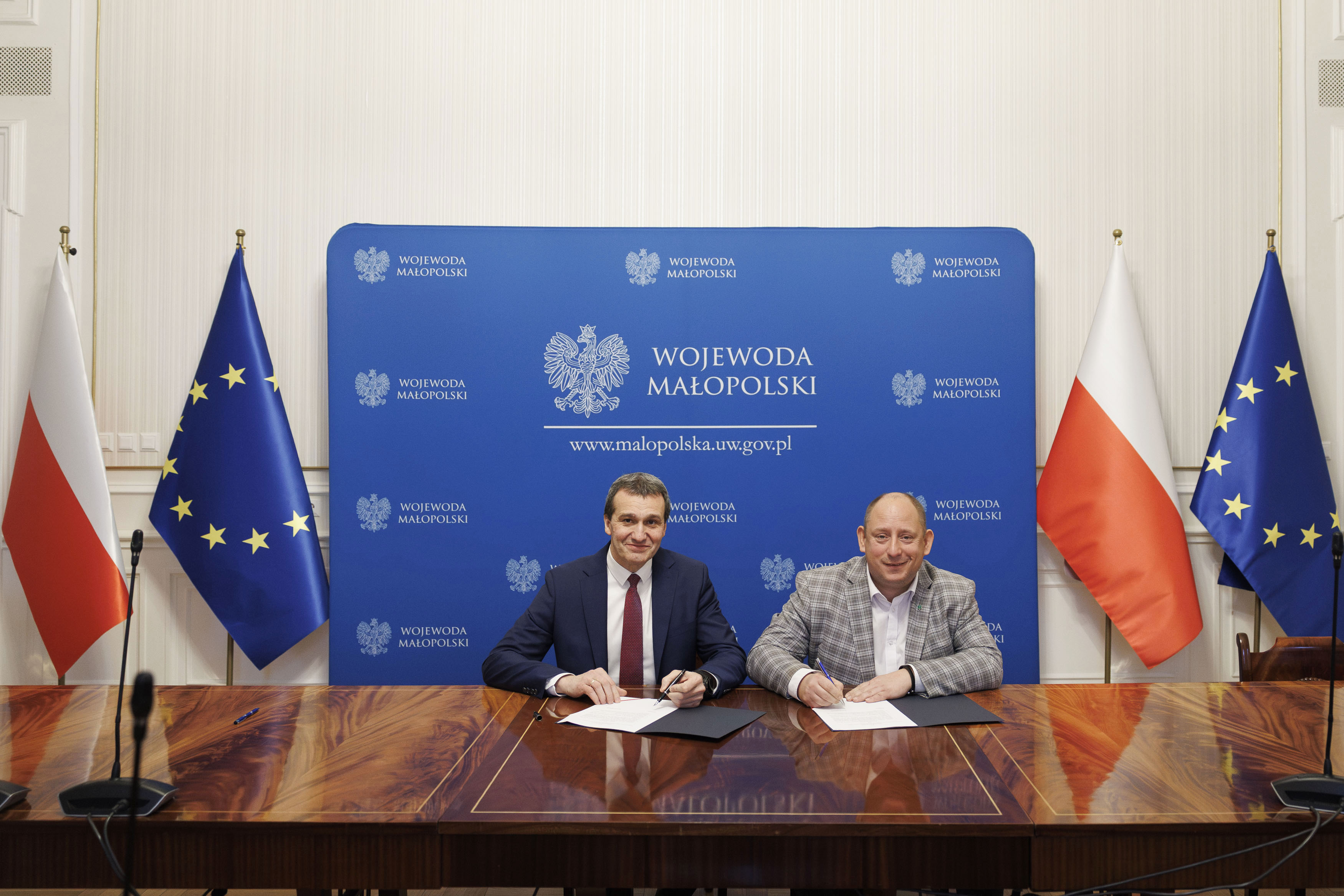 Dzisiaj wojewoda małopolski Krzysztof Jan Klęczar w Krakowie podpisał umowę z wójtem gminy Pleśna Józefem Knapikiem, zaś w delegaturze Małopolskiego Urzędu Wojewódzkiego w Tarnowie umowy podpisała I wicewojewoda małopolska Elżbieta Achinger. Sygnatariuszami byli reprezentanci gmin/ miast: Drwinia, Łapanów, Borzęcin, Mędrzechów, Szczucin, Pałecznica, Szerzyny, Zakliczyn, Biskupice, Gdów, Wieliczka oraz powiatów brzeskiego i dąbrowskiego.