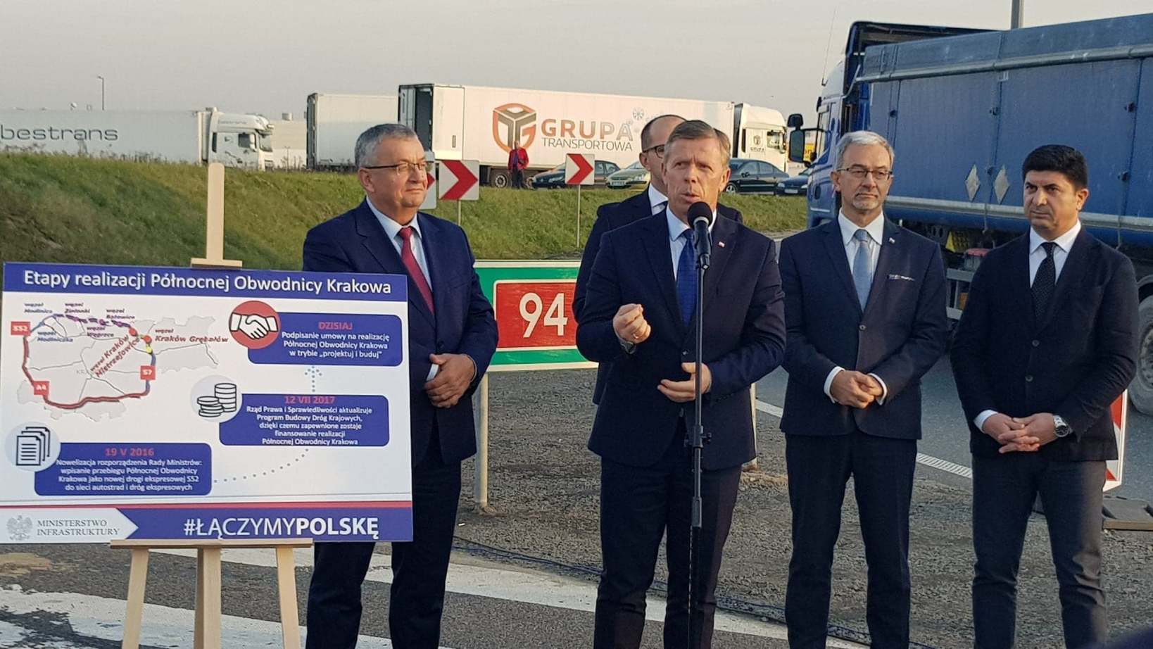 - Północna obwodnica Krakowa to przykład na to, że obecny rząd jest skuteczny i dotrzymuje słowa. Ta bardzo potrzebna dla miasta i regionu inwestycja nie była przewidziana w żadnym z dotychczasowych planów rozwoju infrastruktury drogowej. W ciągu niewiele ponad dwóch lat od decyzji o realizacji obwodnicy dzisiaj już podpisujemy umowę na jej wykonanie – powiedział minister infrastruktury Andrzej Adamczyk.