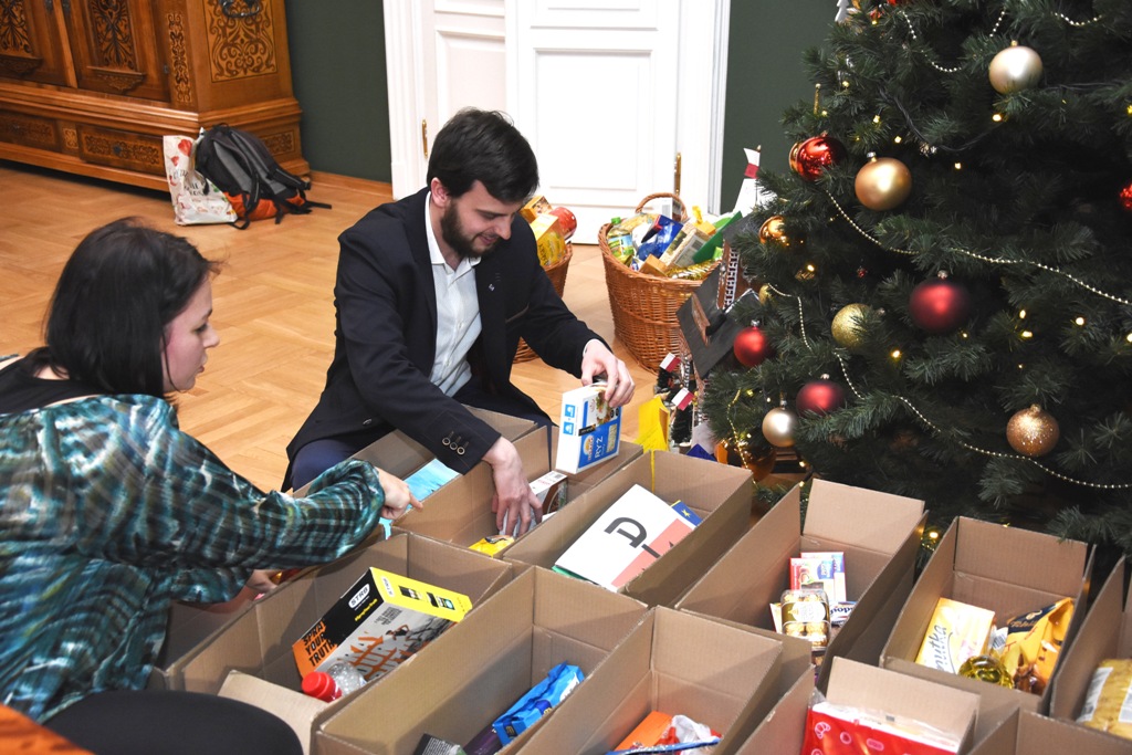 - Gdy patrzymy na magazyn darów, jest wielka radość. Mieszkańcy Krakowa i województwa małopolskiego po raz kolejny pokazali, że są ludźmi wielkiego serca. Każdy przyniesiony kilogram cukru, makaronu, ryżu pokazuje, że los Polaków na Kresach nie jest im obojętny. Na chwilę obecną w krakowskim magazynie zapakowanych mamy prawie 600 jednakowych paczek z żywnością długoterminową; to jest około 7 ton żywności. Darów mamy jeszcze bardzo dużo. Liczę, że uda się przygotować jeszcze około 200 paczek, co będzie rekordem, jeśli chodzi o nasze zbiórki w Krakowie. Jest to dla wszystkich wolontariuszy wielka radość. W tym roku grono wolontariuszy się powiększyło o kolejnych studentów, ale też uczniów szkół, którzy przychodzą pakować paczki – mówił Tomasz Konturek, pełnomocnik rektora Akademii Ignatianum do spraw społecznych i sekretarz zarządu Fundacji Ignatianum.