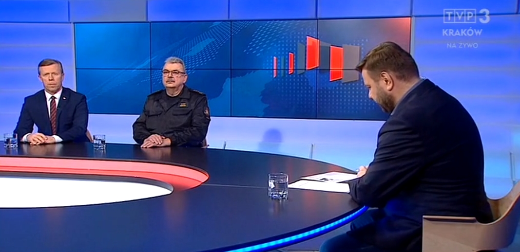 Wojewoda małopolski Piotr Ćwik oraz p.o. małopolski komendant wojewódzki Państwowej Straży Pożarnej st. bryg. Marek Bębenek byli gośćmi redaktora Mariusza Bartkowicza w TVP3 Kraków w programie „Tematy dnia”. Podczas rozmowy podsumowano działania służb w związku z silnymi wiatrami, jakie w miniony weekend przeszły między innymi przez nasze województwo.