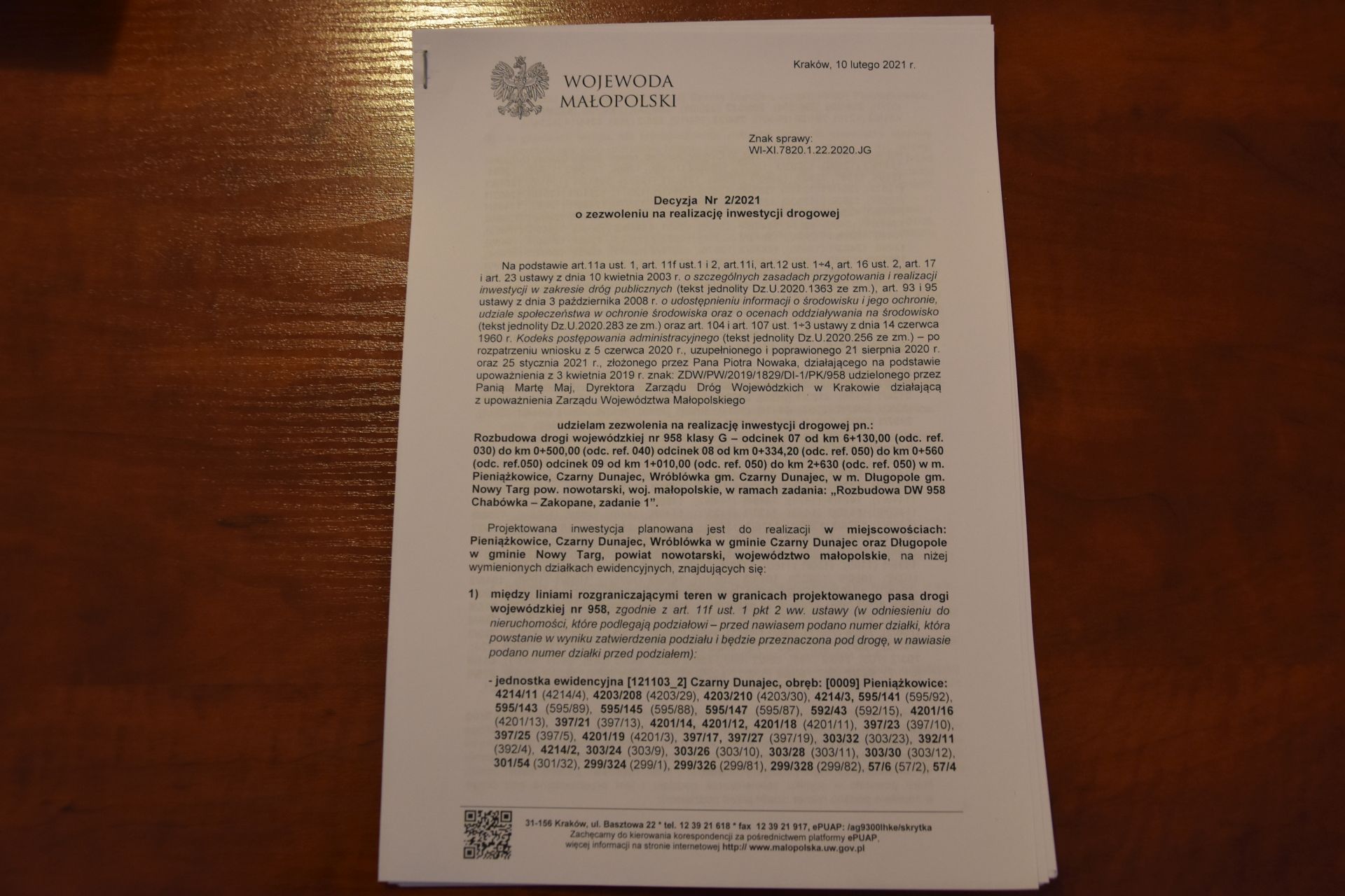 Wojewoda Małopolski Łukasz Kmita wydał zezwolenie na rozbudowę drogi wojewódzkiej nr 958. Inwestycja będzie realizowana w powiecie nowotarskim, w miejscowościach: Pieniążkowice, Czarny Dunajec, Wróblówka oraz Długopole. Dzięki tej inwestycji – realizowanej na odcinku o długości ponad 2,5 km – zwiększy się bezpieczeństwo i komfort użytkowników drogi.