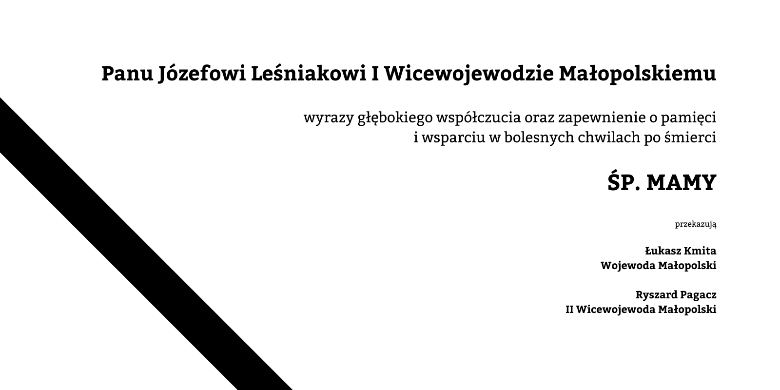 Panu Józefowi Leśniakowi I Wicewojewodzie Małopolskiemu wyrazy głębokiego współczucia oraz zapewnienie o pamięci i wsparciu w bolesnych chwilach po śmierci ŚP. MAMY przekazują
