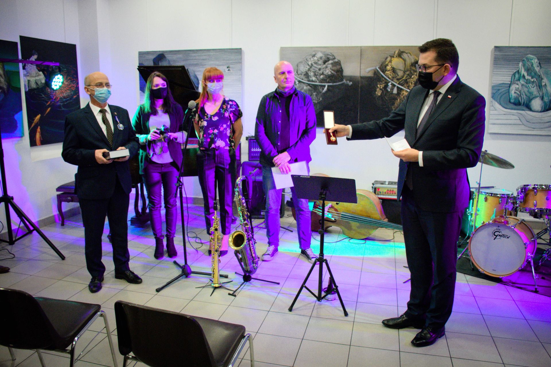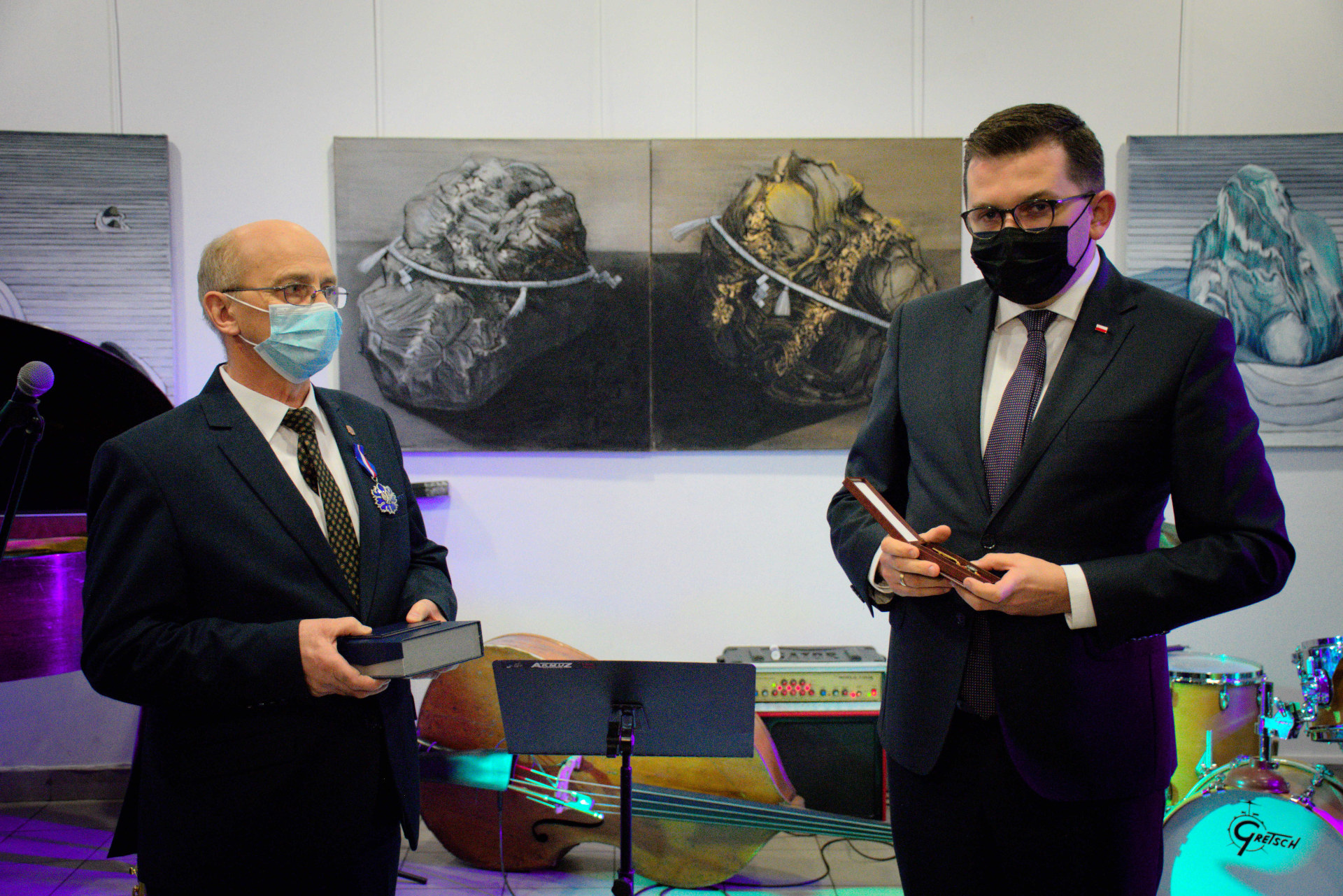 - Medal „Zasłużony Kulturze Gloria Artis” nadawany jest osobom szczególnie wyróżniającym się w dziedzinie twórczości artystycznej, działalności kulturalnej lub ochronie kultury i dziedzictwa narodowego. Odznaka „Zasłużony dla Kultury Polskiej" to zaś forma doceniania zasług w tworzeniu, upowszechnianiu i ochronie kultury. Galeria Sztuki Współczesnej – Biuro Wystaw Artystycznych w Olkuszu jest miejscem niezwykle ważnym dla Mieszkańców naszego regionu, mocno wspierającym osoby utalentowane ze środowiska artystycznego Olkusza i regionu. Choćby teraz odbywają się tu XXI Olkuskie Zaduszki Jazzowe – mówi wojewoda małopolski Łukasz Kmita.