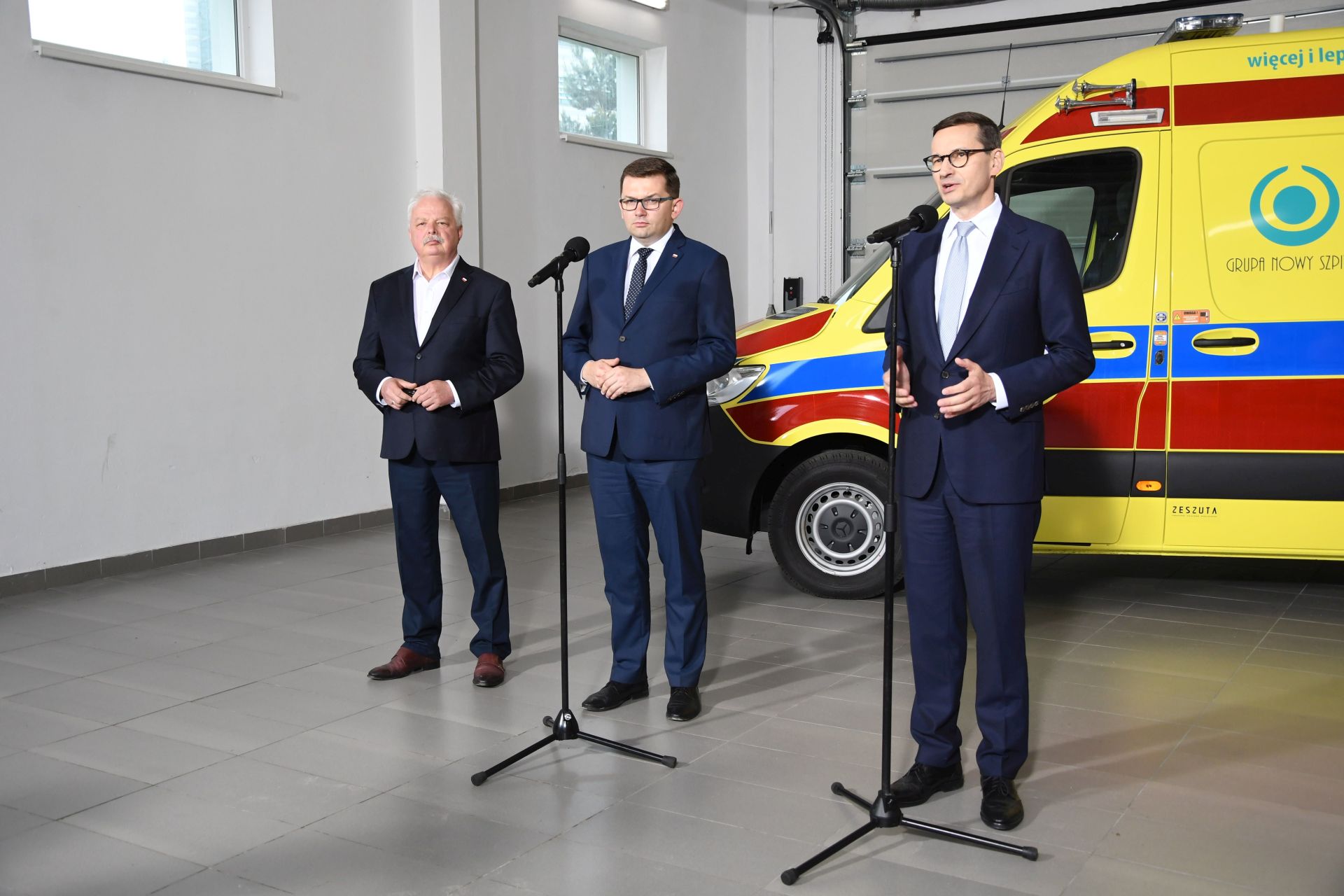 Dla rządu nie ma nic ważniejszego niż zapewnienie bezpieczeństwa i zdrowia Polaków. Dlatego stale dążymy do poprawy funkcjonowania służby zdrowia. Bez zwiększonego finansowania nie będzie to możliwe. Chcemy w ciągu najbliższych 6 lat zwiększyć wydatki na zdrowie do 7 proc. PKB. Już w 2023 r. osiągną one 6 proc. PKB. Dodatkowe pieniądze zostaną przeznaczone m.in. na: inwestycje i modernizację infrastruktury. Premier Mateusz Morawiecki uczestniczył w symbolicznym przekazaniu kluczyków do nowej karetki w Nowym Szpitalu w Olkuszu. Odwiedził też budowę bloku operacyjnego. Premierowi towarzyszyli wicemarszałek Sejmu Ryszard Terlecki, wicemarszałek Senatu Marek Pęk, sekretarz stanu w ministerstwie sportu i turystyki Jacek Osuch, wojewoda małopolski Łukasz Kmita, II wicewojewoda Ryszard Pagacz oraz samorządowcy.
