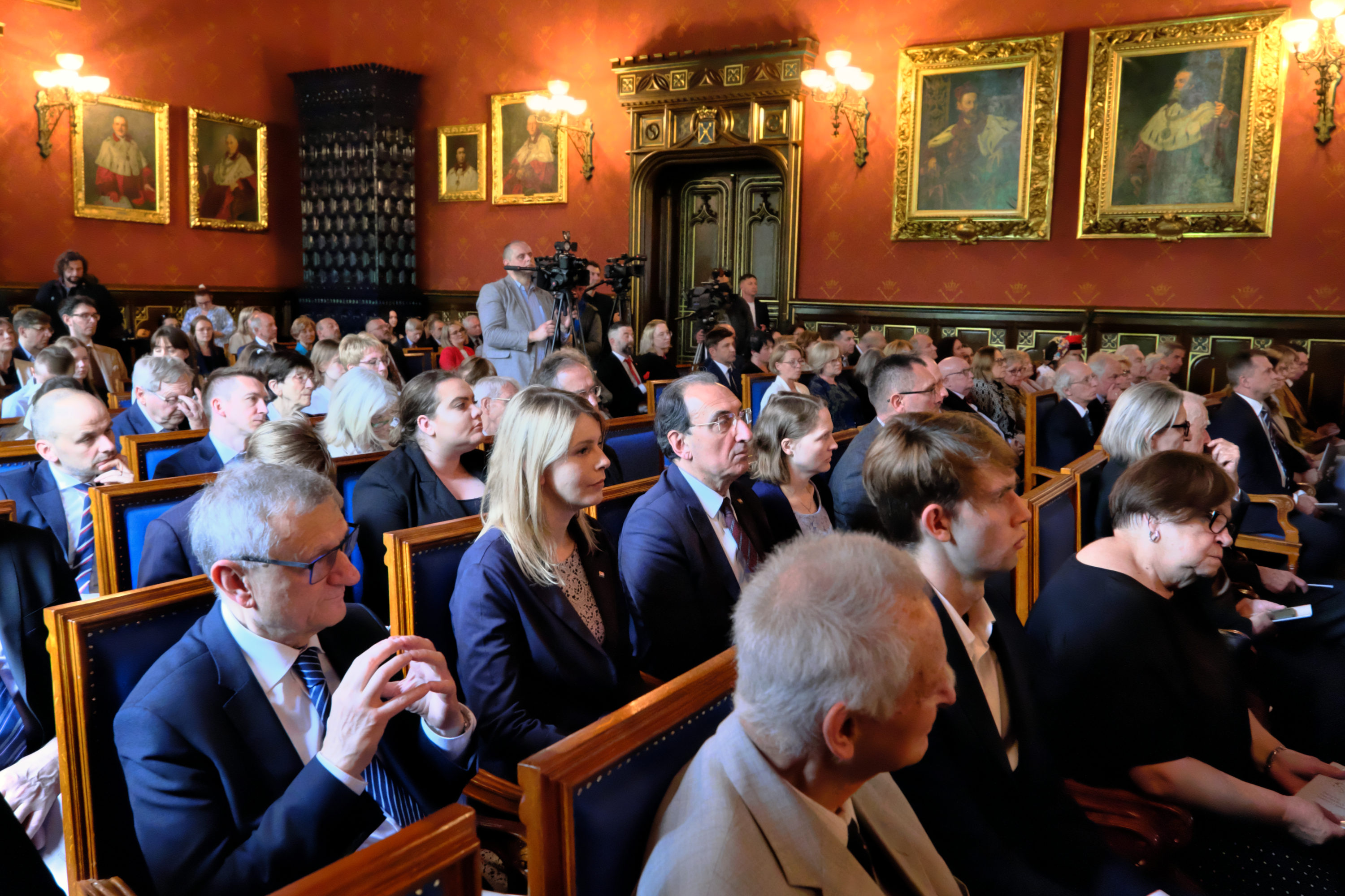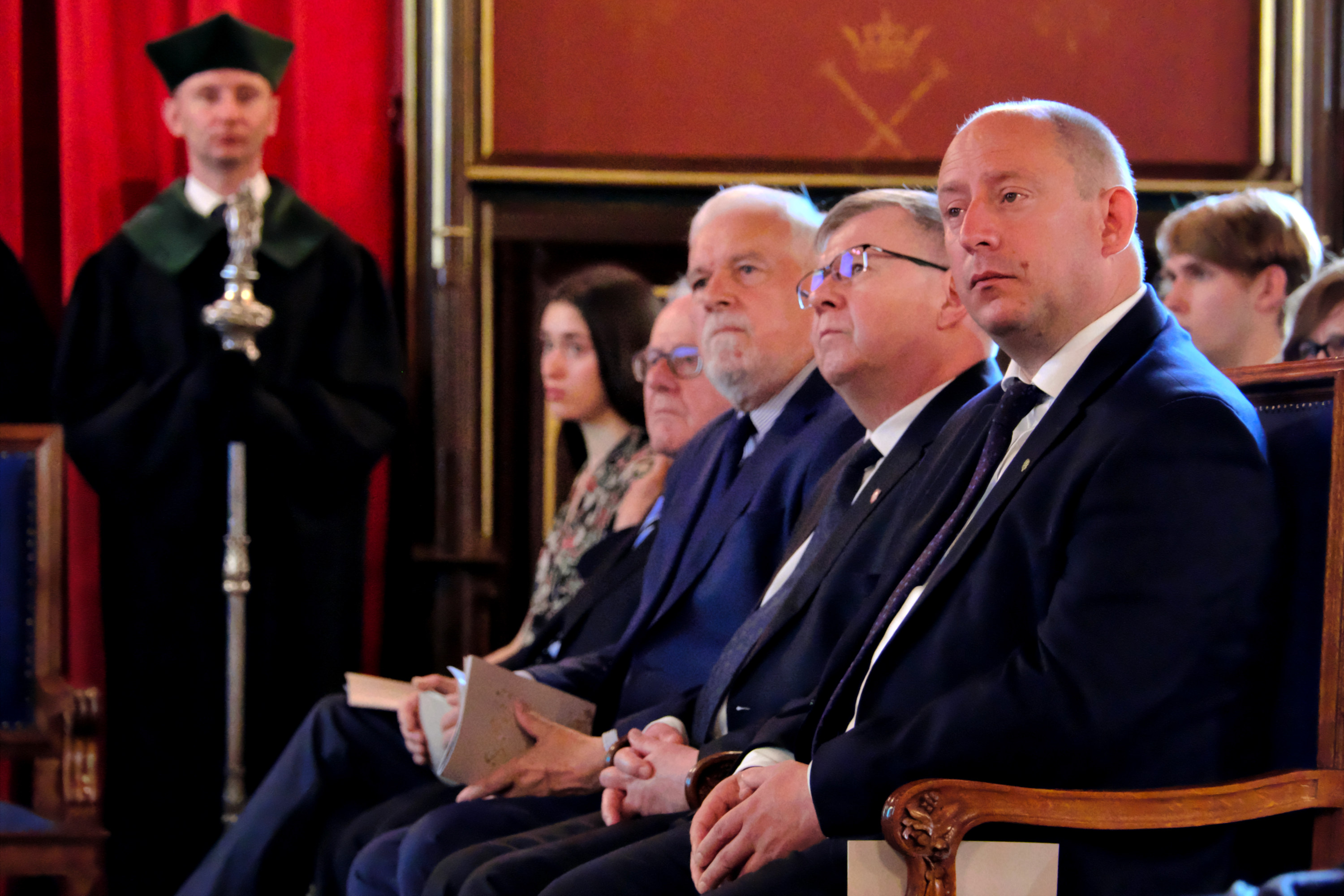 - Ambitna wizja i odwaga ówczesnych monarchów, twórców i fundatorów Uniwersytetu Jagiellońskiego, przyniosła Polsce pierwszą szkołę wyższą. Patrząc na ponad sześć i pół wieku jej działalności, odczuwamy respekt wobec monumentalnego dzieła budowanego przez kolejne pokolenia całej społeczności akademickiej. Dzieła, które nie tylko przetrwało najtrudniejsze wydarzenia polskiej historii, ale jednocześnie rozwijało się, podnosząc poziom kształcenia i poszerzając swoją ofertę. Proszę przyjąć w tym wyjątkowym dniu życzenia nieustającej siły i pasji w niesieniu, podtrzymywaniu i ochronie trwałej spuścizny Uczelni – mówi wojewoda małopolski Krzysztof Jan Klęczar.