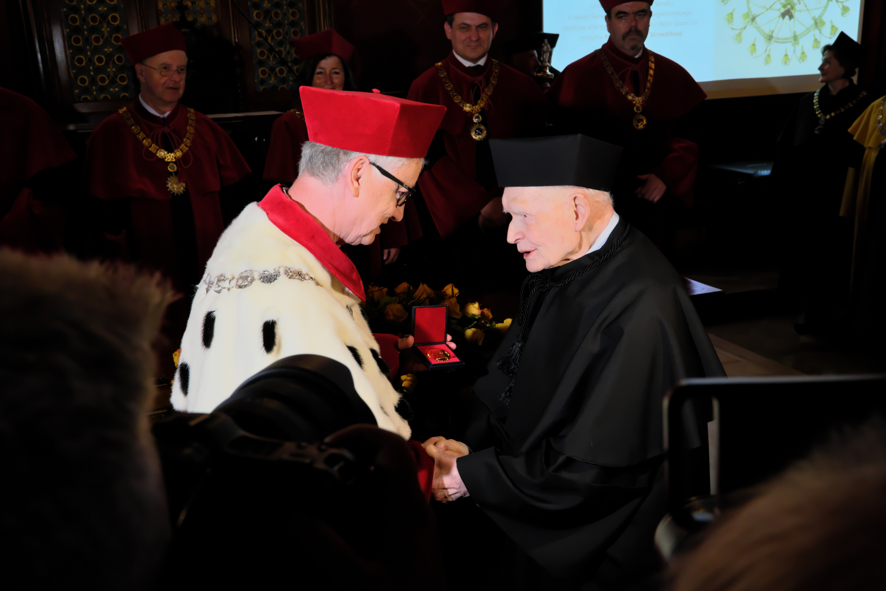 W samo południe w auli Collegium Novum odbyło się posiedzenie Senatu UJ, podczas którego złoty medal Plus Ratio Quam Vis odebrał prof. Adam Strzembosz.