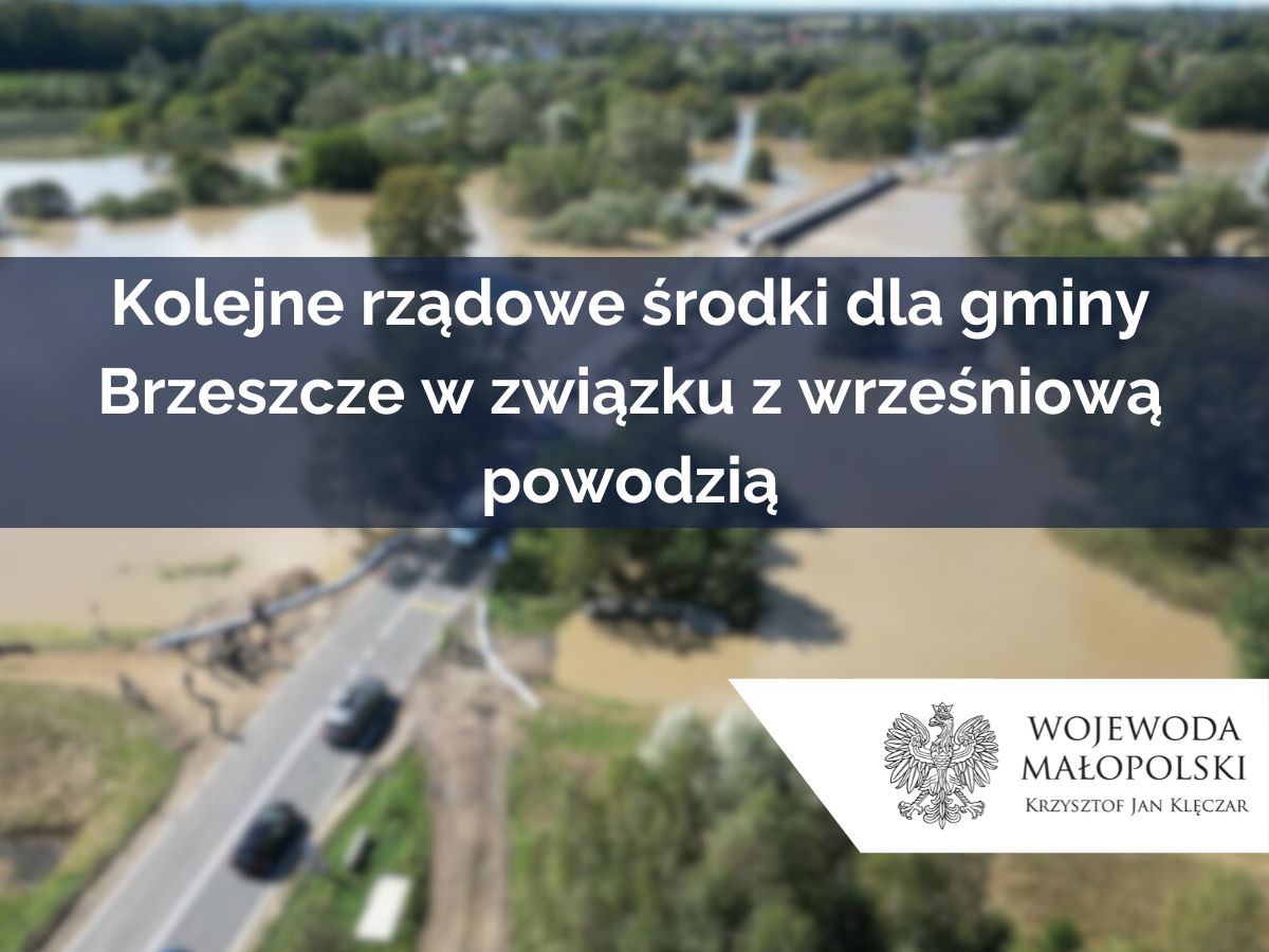 Na pomoc doraźną (zasiłki do 8 tys. zł) Małopolski Urząd Wojewódzki w Krakował przekazał gminom z powiatu oświęcimskiego (Brzeszcze, Osiek, Oświęcim) łącznie prawie 290 tys. złotych. Pomoc w tym zakresie została przyznana 36 poszkodowanym rodzinom. Natomiast o pomoc w ramach zasiłków do 200 tys. złotych wystąpiła tylko gmina Brzeszcze. Dotychczas na konto gminy przekazaliśmy na te zasiłki, czyli na remonty 6 budynków mieszkalnych – ponad 261 tys. złotych.