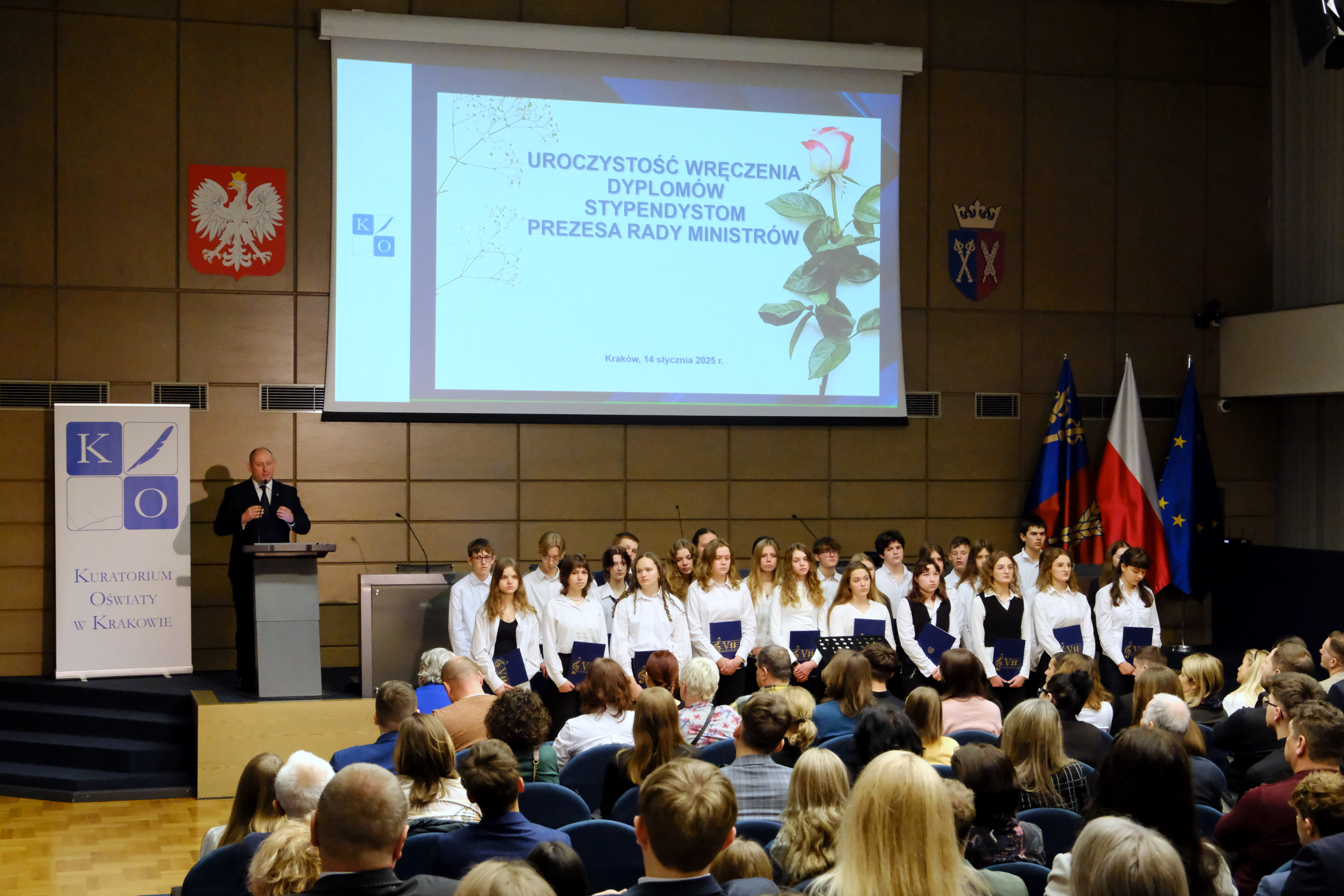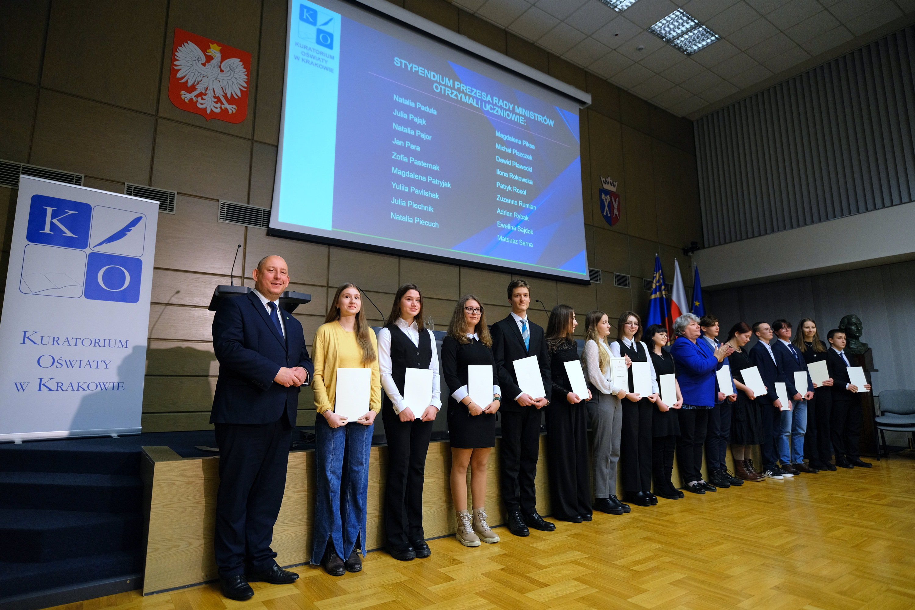 Laureatami stypendiów są uczniowie małopolskich szkół, które umożliwiają uzyskanie świadectwa dojrzałości. Pełna lista wyróżnionych: https://kuratorium.krakow.pl/lista-stypendystow-prezesa-rady-ministrow-na-rok-szkolny-2024-2025-z-wojewodztwa-malopolskiego/