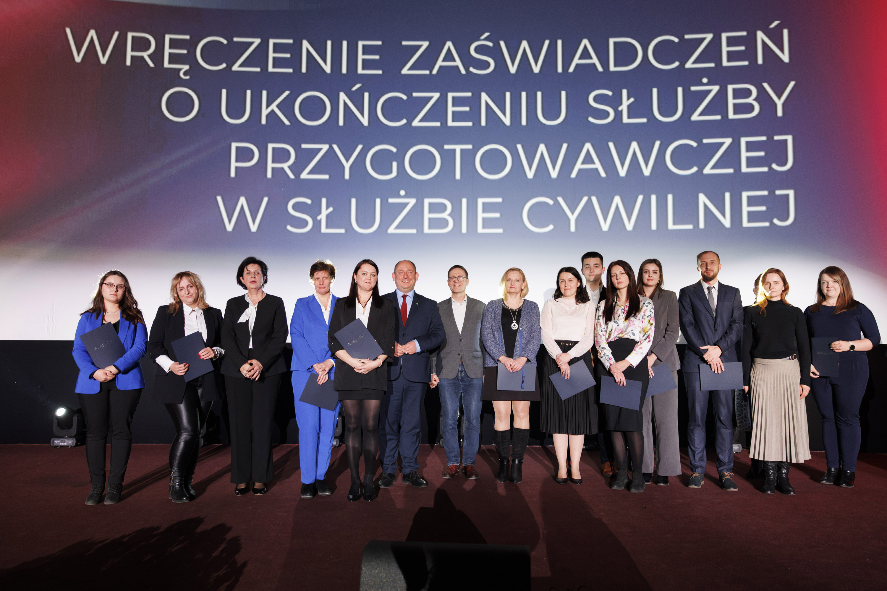 Przy okazji świętowania Dnia Służby Cywilnej wojewoda małopolski Krzysztof Jan Klęczar wraz z dyrektor generalną MUW w Krakowie Lucyną Gajdą wręczyli zaświadczenia o ukończeniu służby przygotowawczej 14 nowym członkom korpusu.