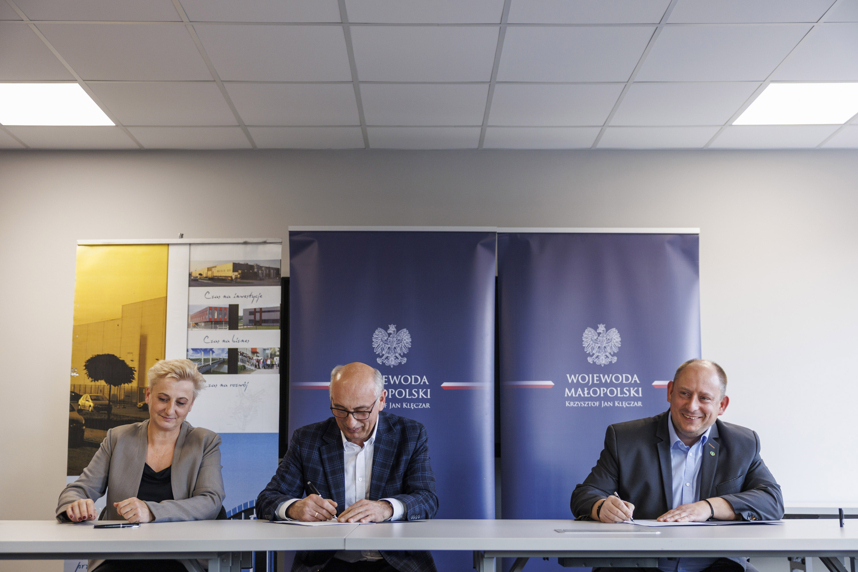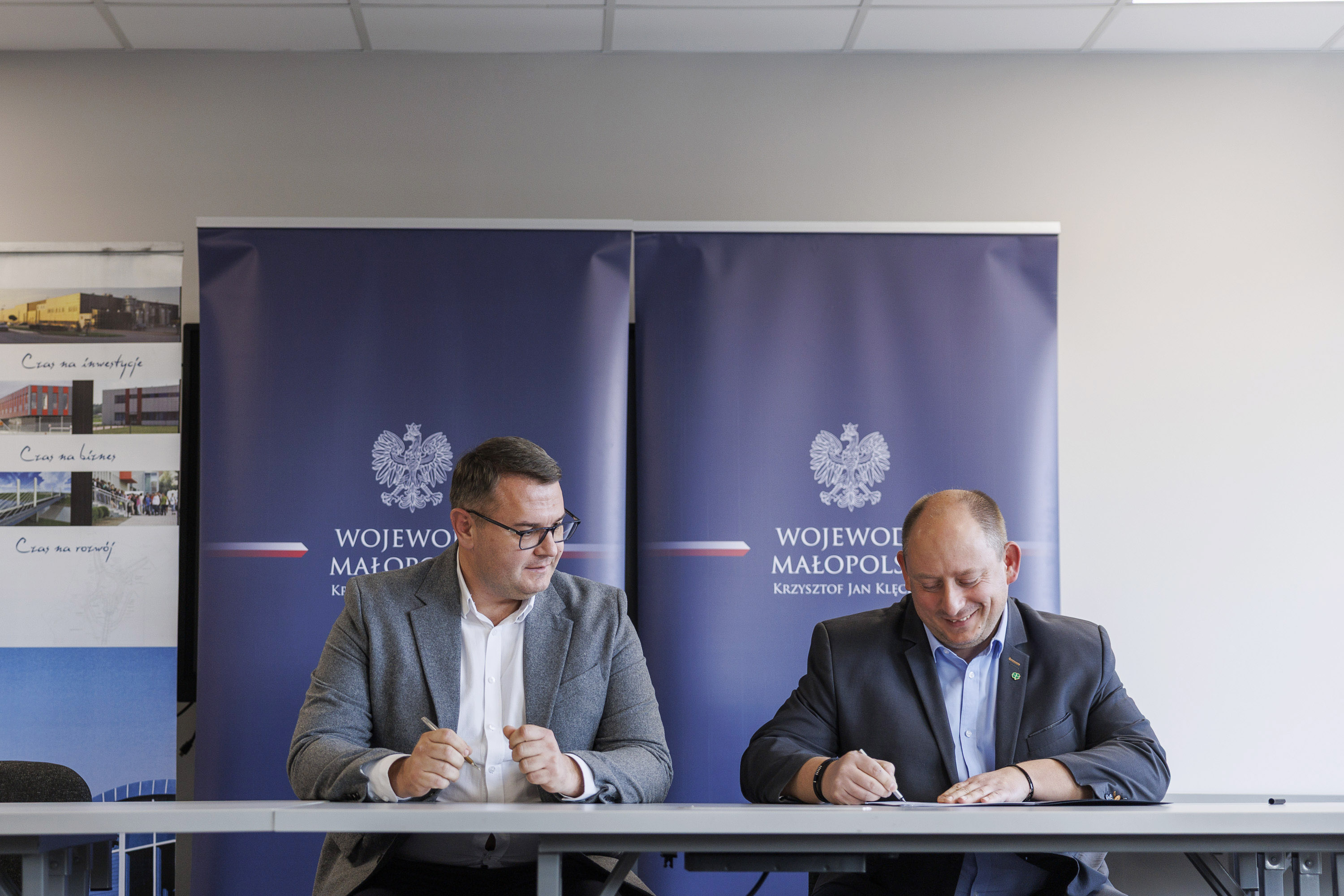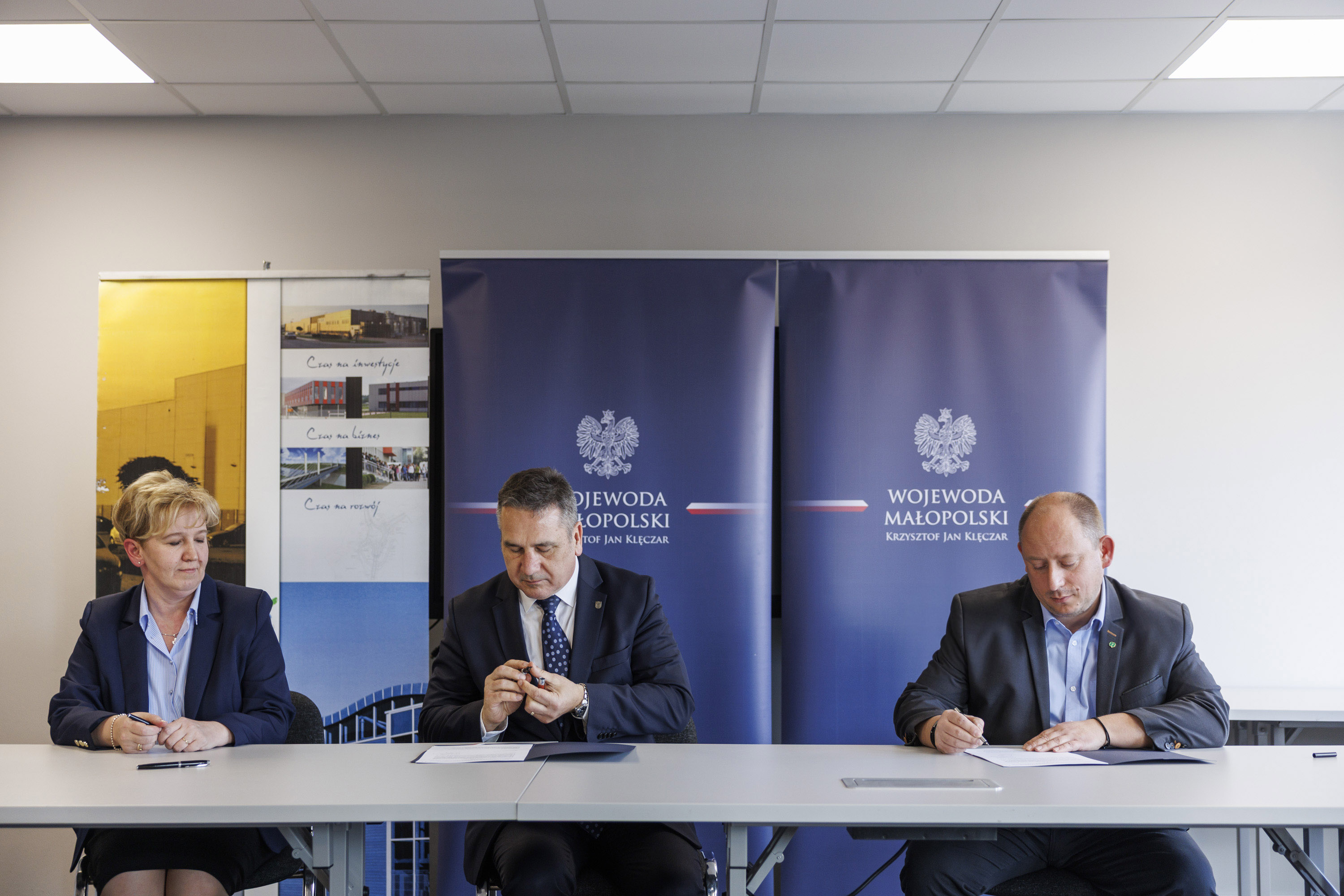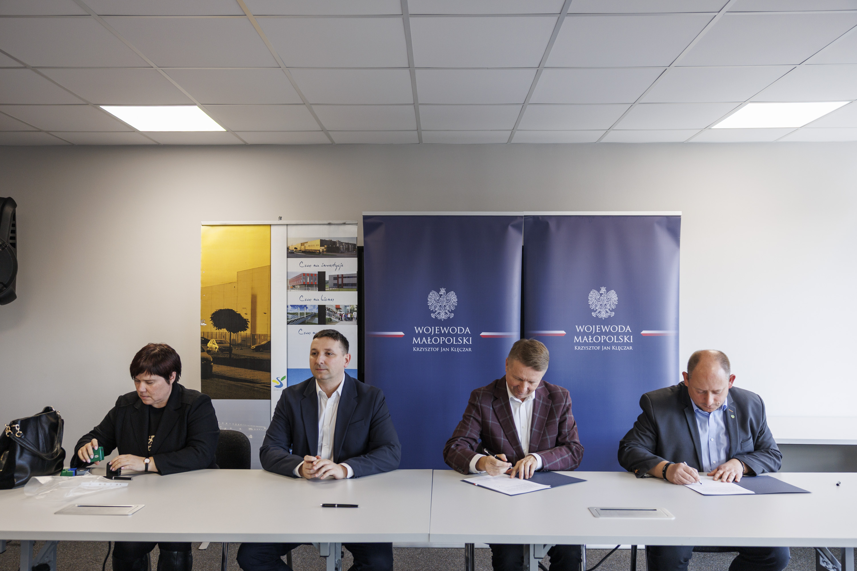 Podczas dzisiejszego spotkania w Interaktywnym Centrum Edukacji Przeciwpożarowej w Dobczycach wojewoda małopolski Krzysztof Jan Klęczar podpisał umowy z przedstawicielami jednostek samorządu terytorialnego z powiatu myślenickiego.