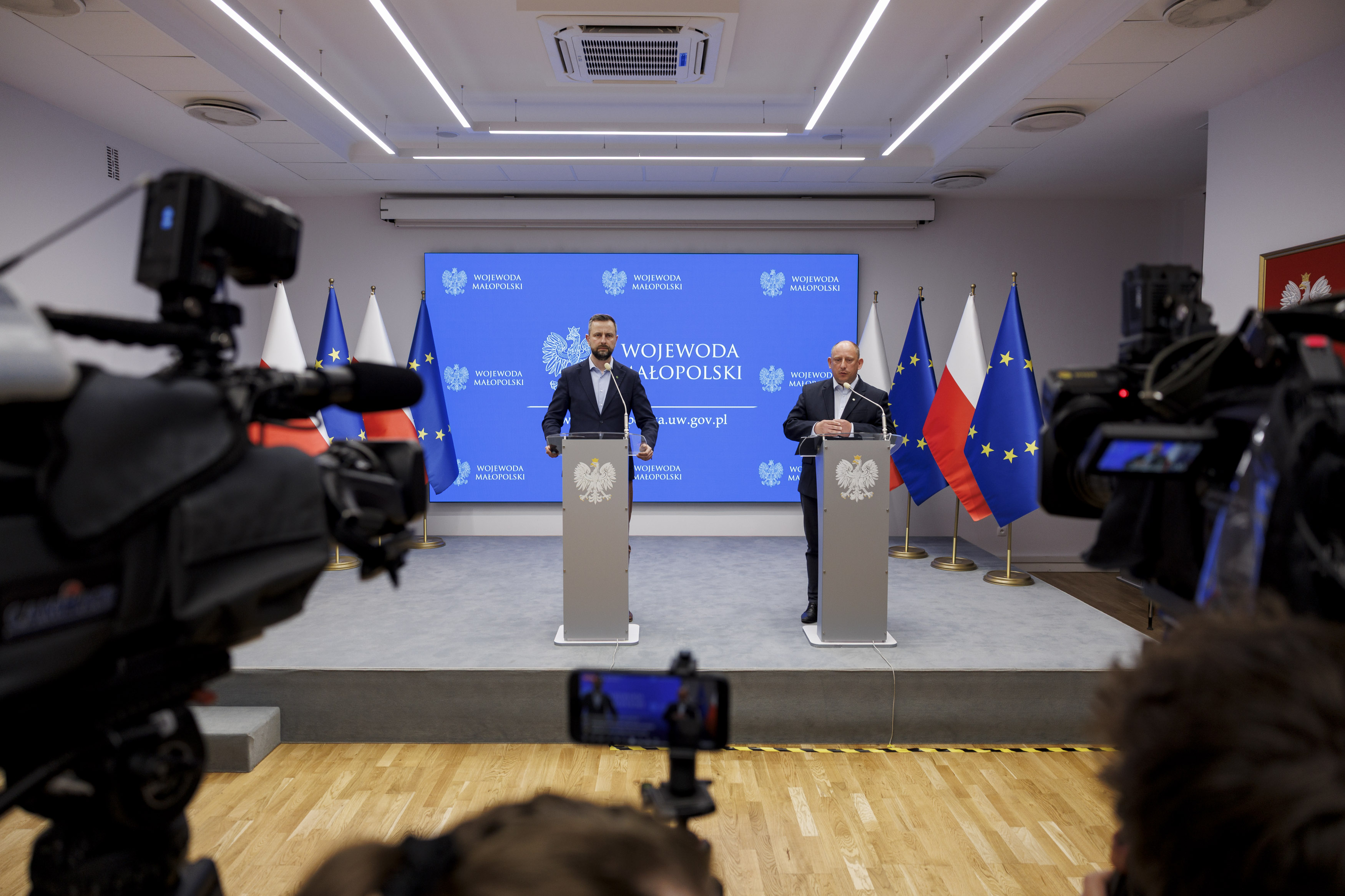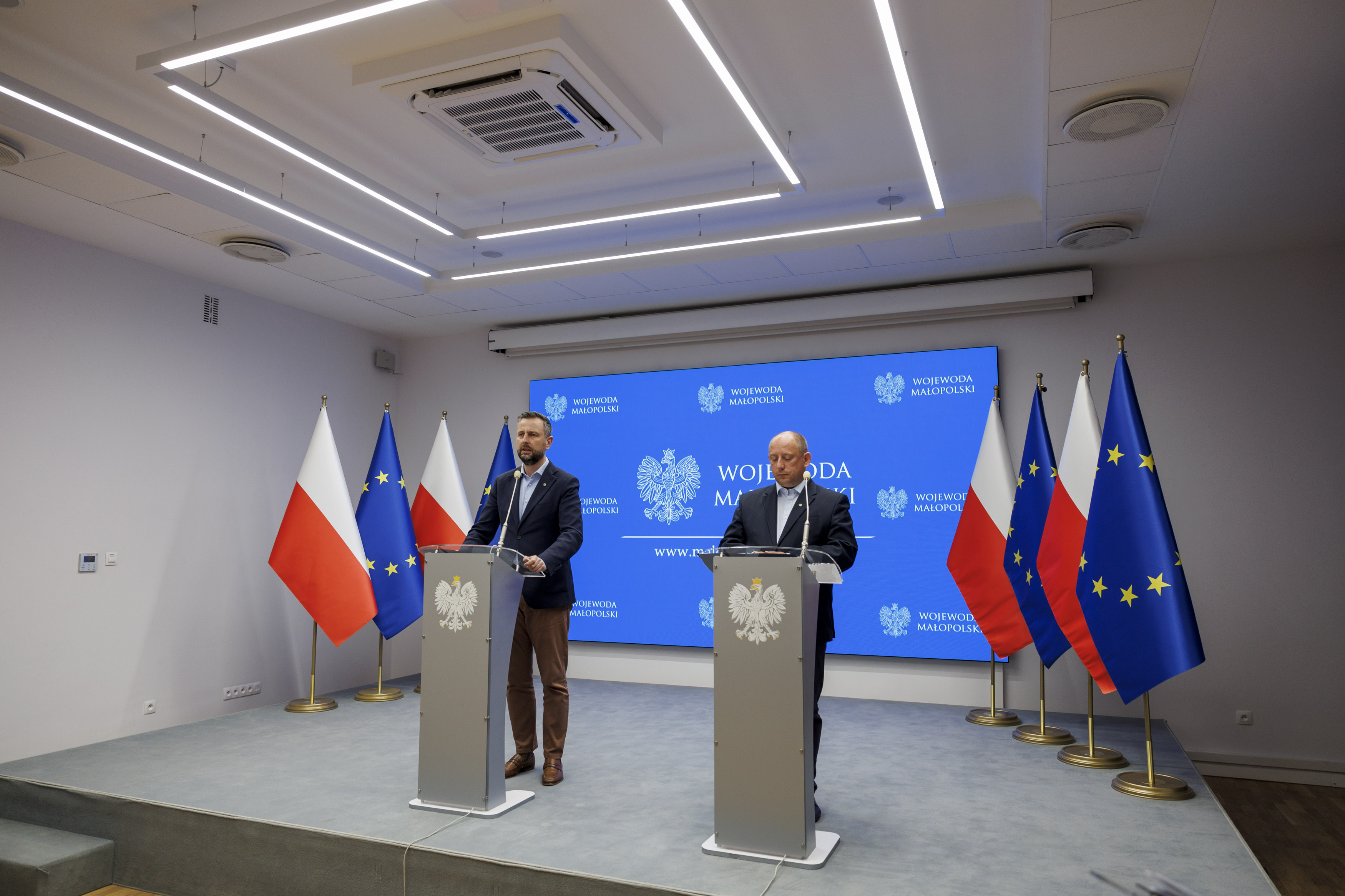 W Małopolskim Urzędzie Wojewódzkim w Krakowie odbył się dziś briefing prasowy wicepremiera, ministra obrony narodowej Władysława Kosiniaka-Kamysza oraz wojewody małopolskiego Krzysztofa Jana Klęczara poświęcony bieżącym tematom związanym z bezpieczeństwem oraz rozwojem Małopolski.