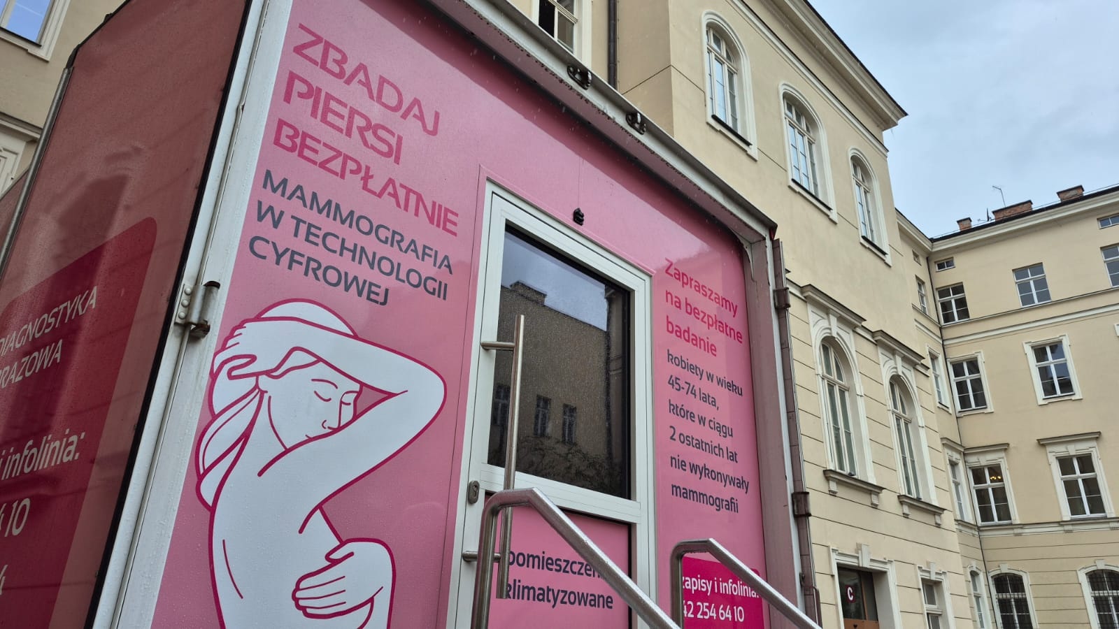Po raz pierwszy w historii na dziedzińcu Małopolskiego Urzędu Wojewódzkiego w Krakowie stanął mammobus. Przez dwa dni panie pracujące w MUW będą miały możliwość skorzystania z bezpłatnych badań mammograficznych w ramach Populacyjnego Programu Wczesnego Wykrywania Raka Piersi, skierowanego do kobiet w wieku 45-74 lata. Z badania odpłatnie mogą również skorzystać panie w wieku 35-44 lata.
