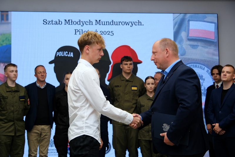 – Serdecznie gratuluję wszystkim uczniom wytypowanym przez poszczególne szkoły do Sztabu Młodych Mundurowych oraz tym, którzy wybrani zostali do jego prezydium. Wierzę, że będzie to dla Was cenne doświadczenie, a dołożymy wszelkich starań, by takie było. W młodości siła! – mówi wojewoda małopolski Krzysztof Jan Klęczar.