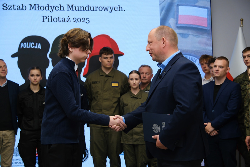 – Ci uczniowie, którzy weszli w skład Sztabu Młodych Mundurowych, swą postawą pokazują, że są świadomi swojego potencjału i znaczenia budowania społecznej odporności. Może kiedyś wstąpią do określonych formacji albo będą współtworzyć struktury składające się na system ochrony ludności i obrony. Może będą komendantami, dowódcami, a może i wojewodami. Dlatego chcemy pokazać im wycinek m.in. systemu zarządzania kryzysowego, zaprosić do wspólnych działań i powierzyć określone zadania. A nade wszystko – traktować ich serio, bo to od ich zaangażowania już na tym „szkolnym” etapie i właśnie takich działań edukacyjnych zaczyna się budowanie społeczeństwa prawdziwie obywatelskiego, o wysokim poziomie gotowości i odporności społecznej. To zatem, co składa się na fazę przygotowania, na którą tak mocno akcent kładzie ustawa o ochronie ludności i obronie cywilnej – podkreśla wojewoda małopolski Krzysztof Jan Klęczar.