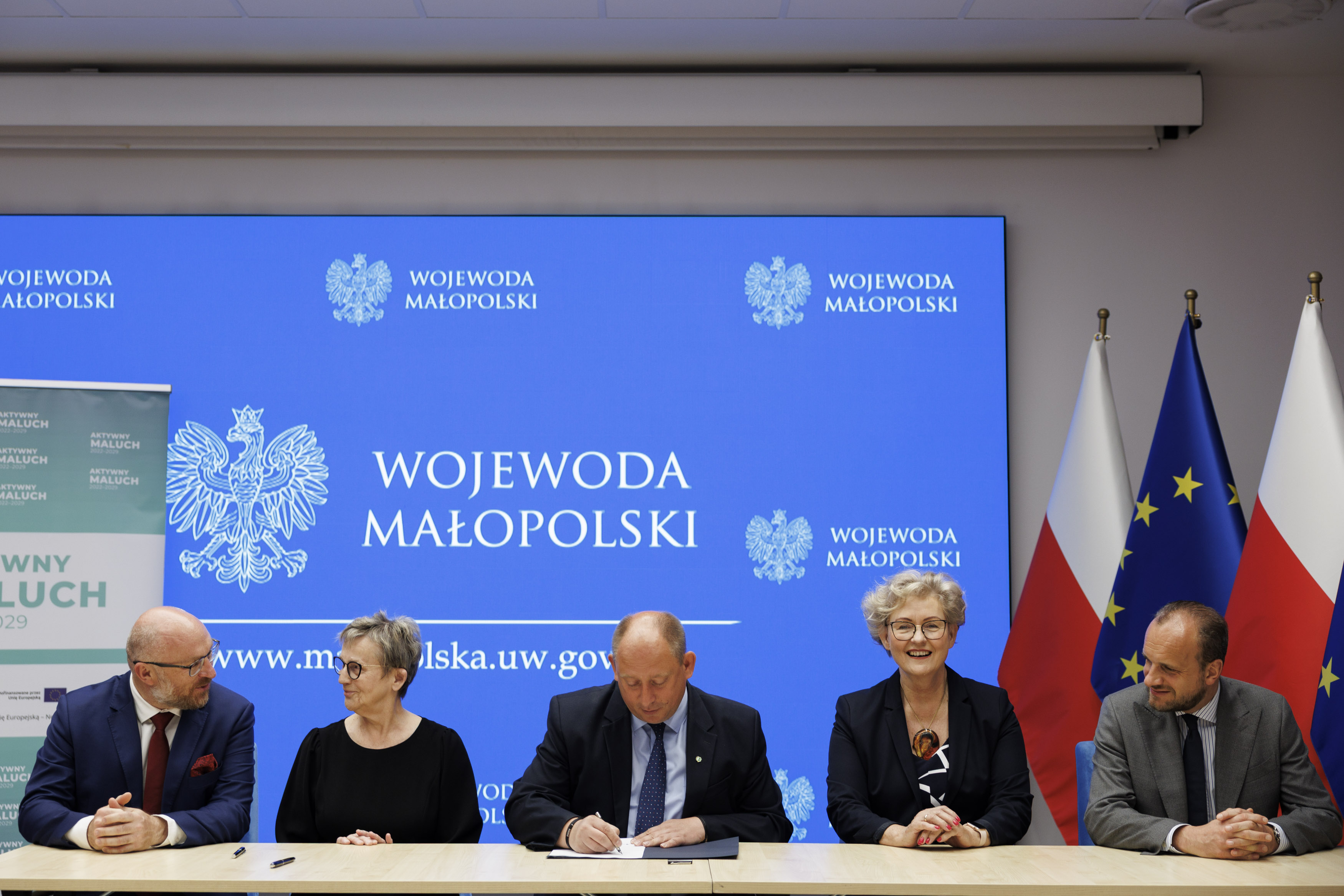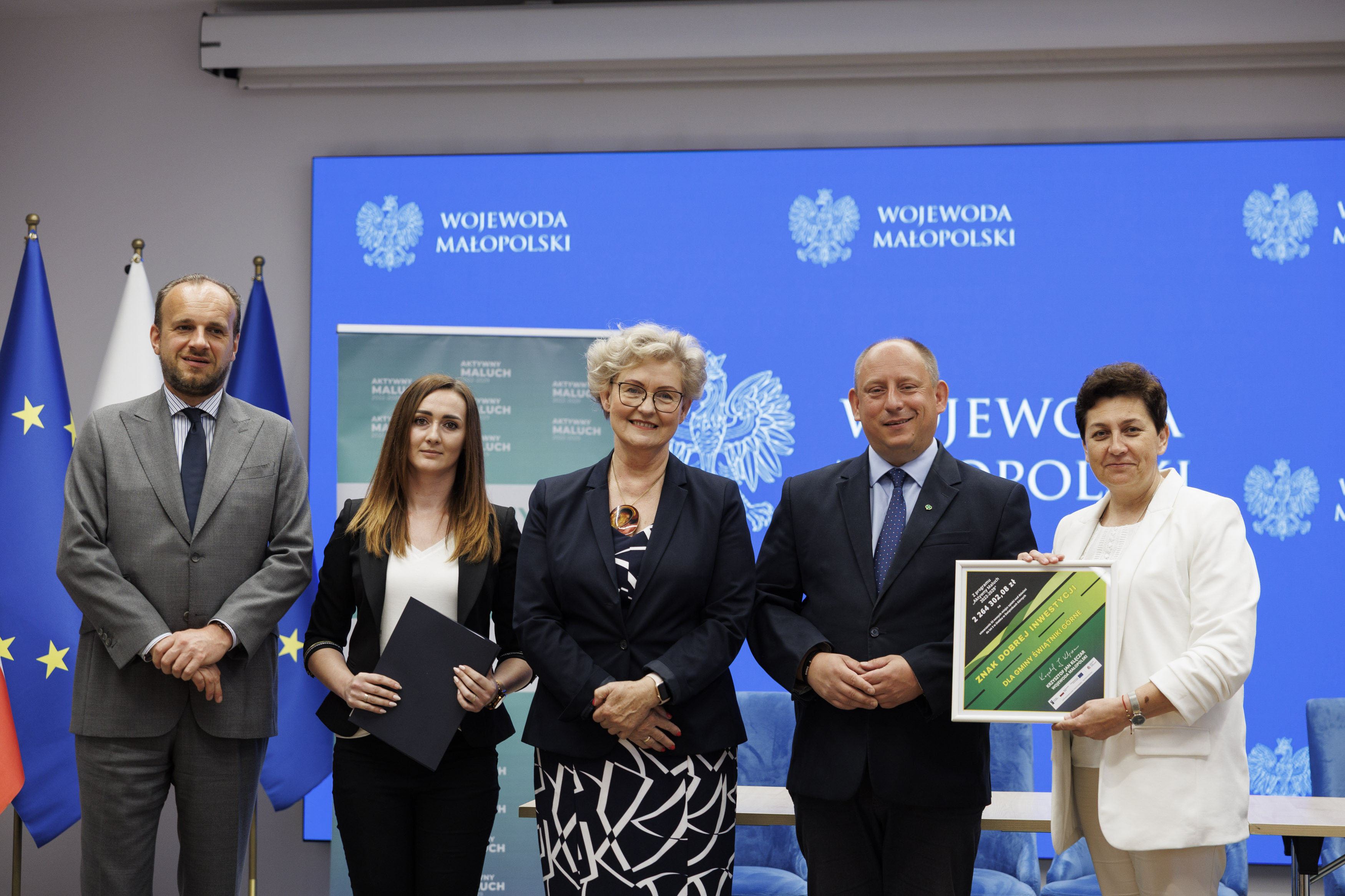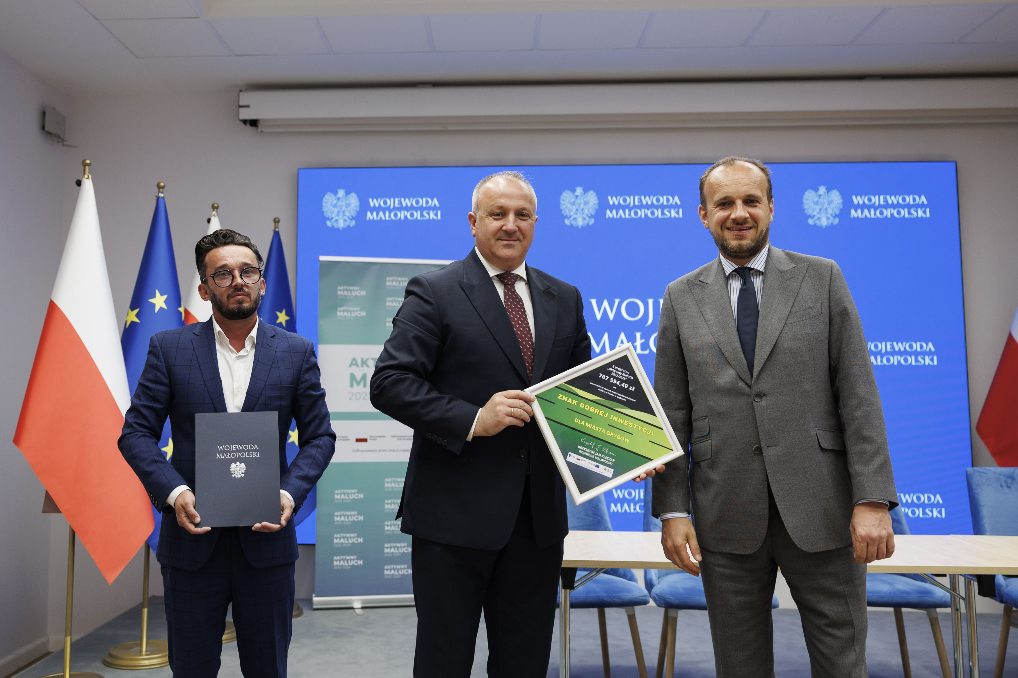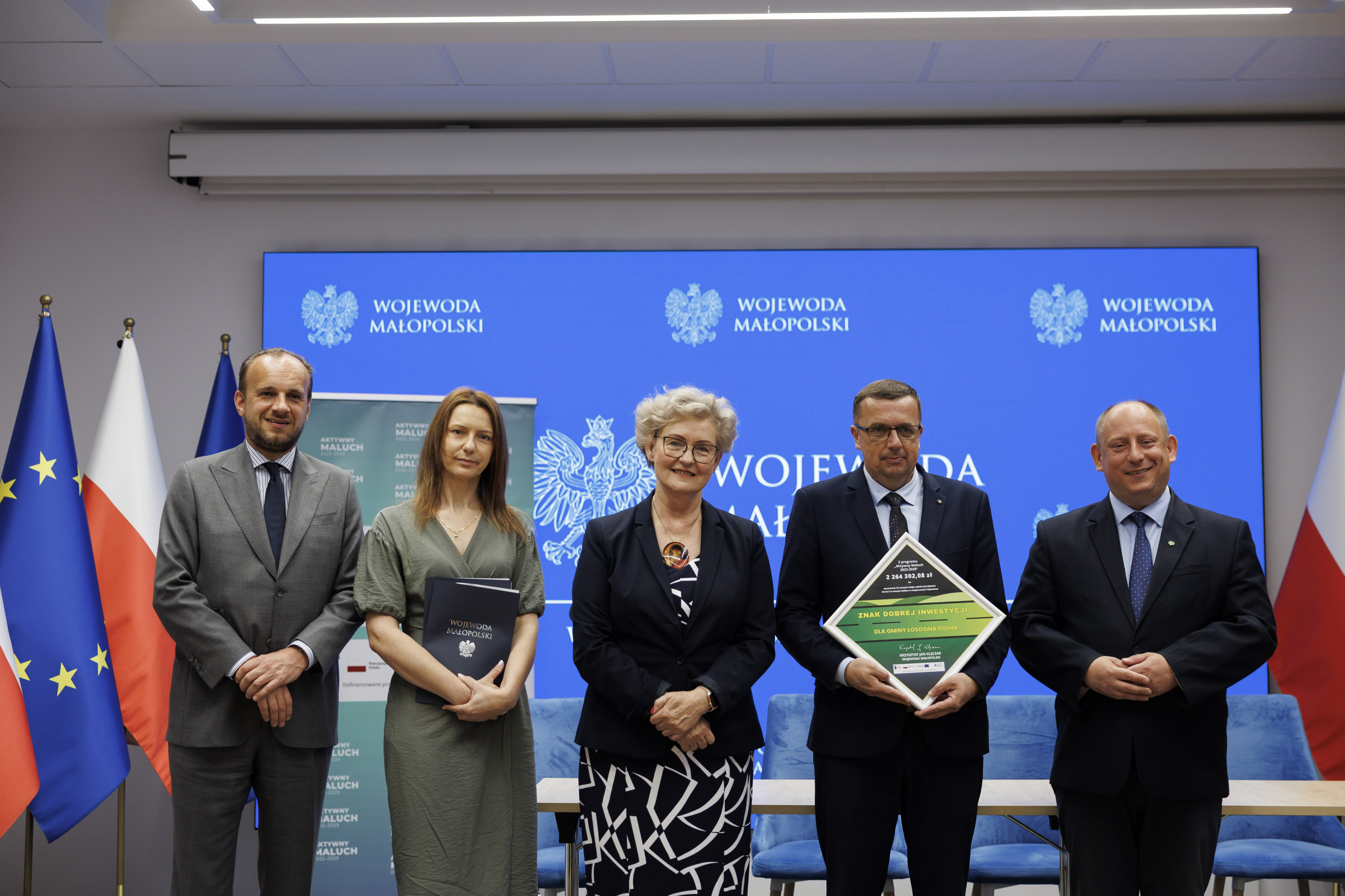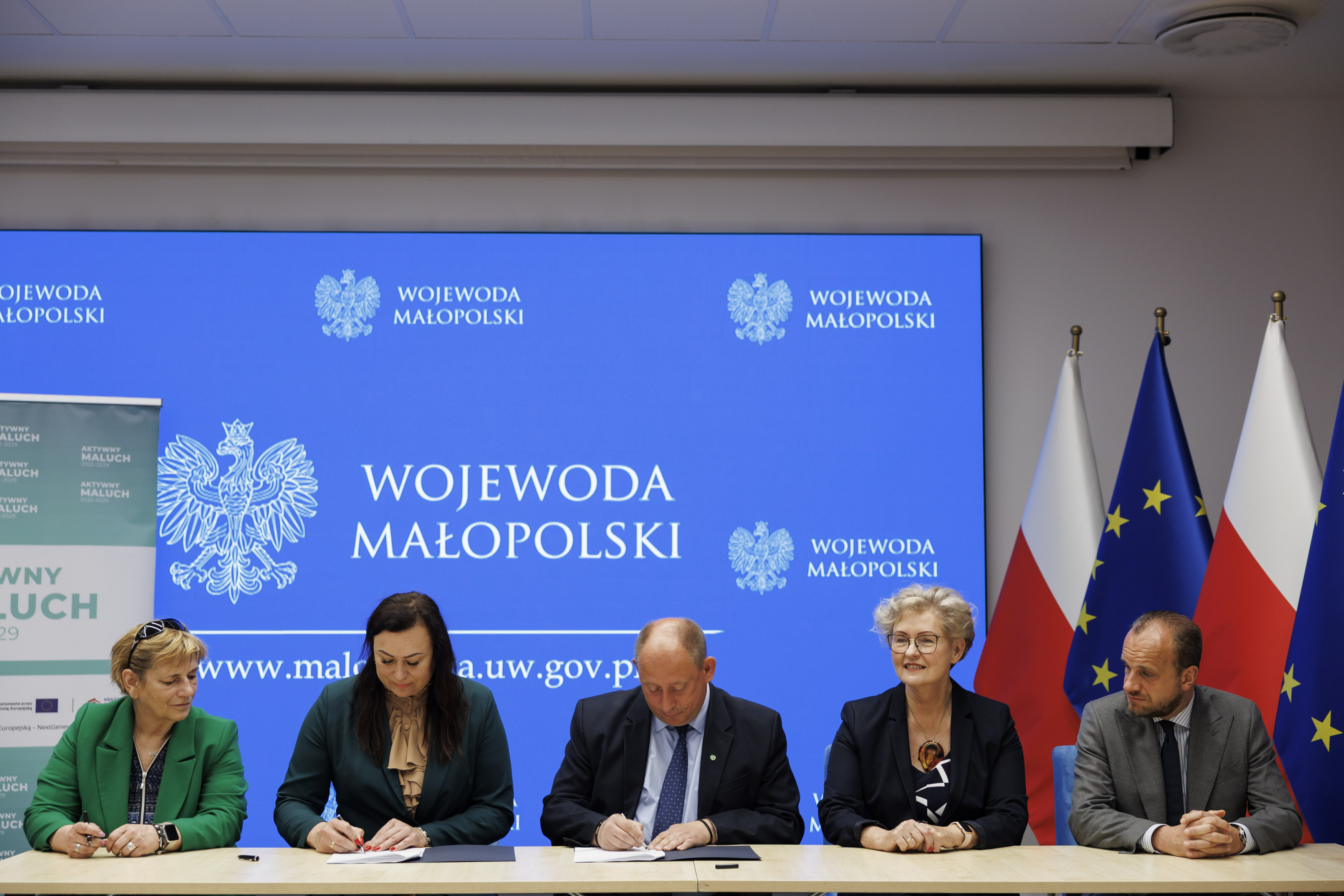 Wojewoda małopolski Krzysztof Jan Klęczar wraz z wicewojewodami Elżbietą Achinger i Ryszardem Śmiałkiem podpisali dziś z przedstawicielami tych samorządów umowy potwierdzające przyznane dofinansowanie.