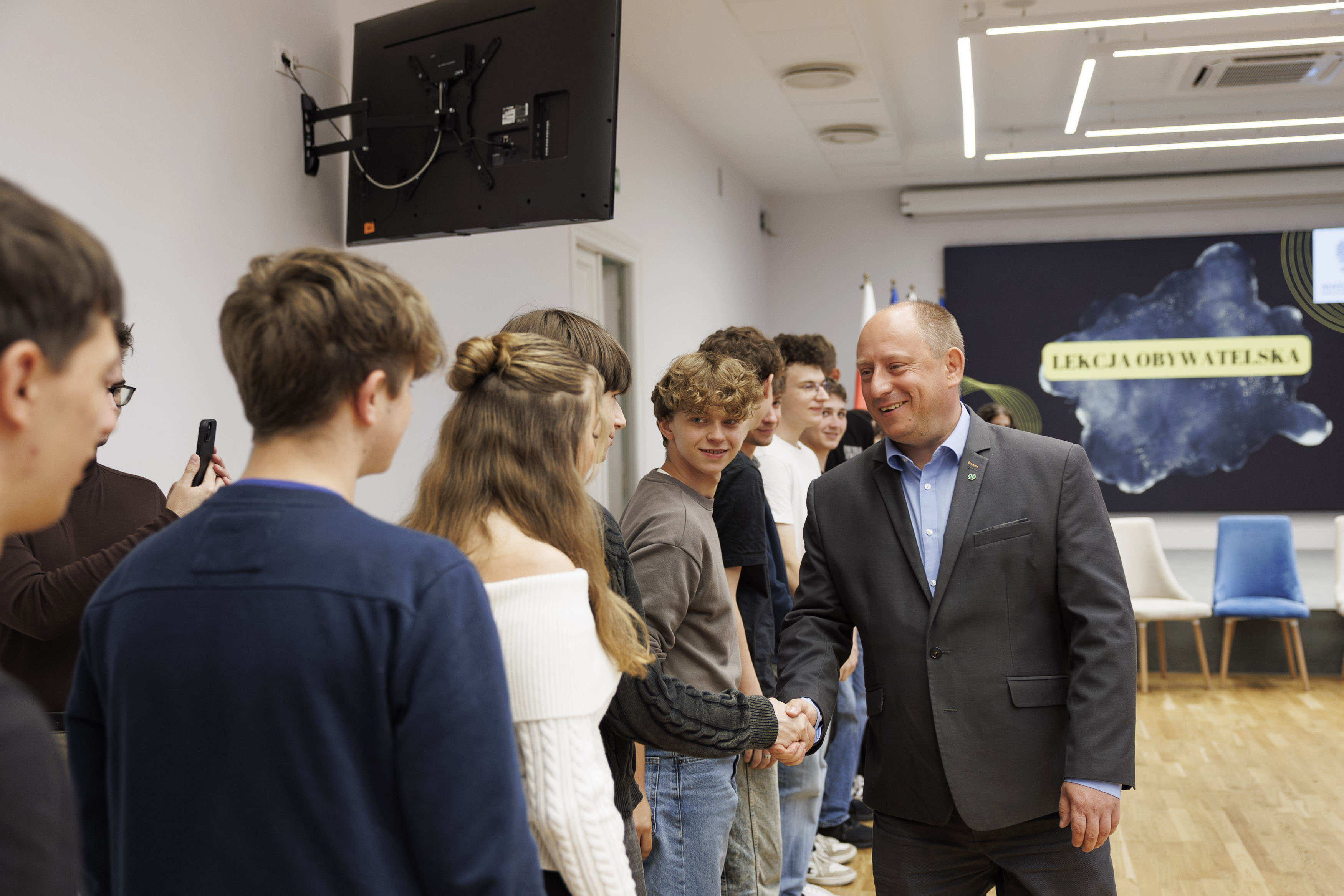 - Lekcje obywatelskie mają pokazać młodym, jak działa państwo. Realizujemy to zadania niemal od początku naszych działań w Małopolskim Urzędzie Wojewódzkim w Krakowie. Dziękuję, że Wy – młodzi przyjaciele – chcecie nas wysłuchać i z nami porozmawiać – mówi wojewoda małopolski Krzysztof Jan Klęczar.