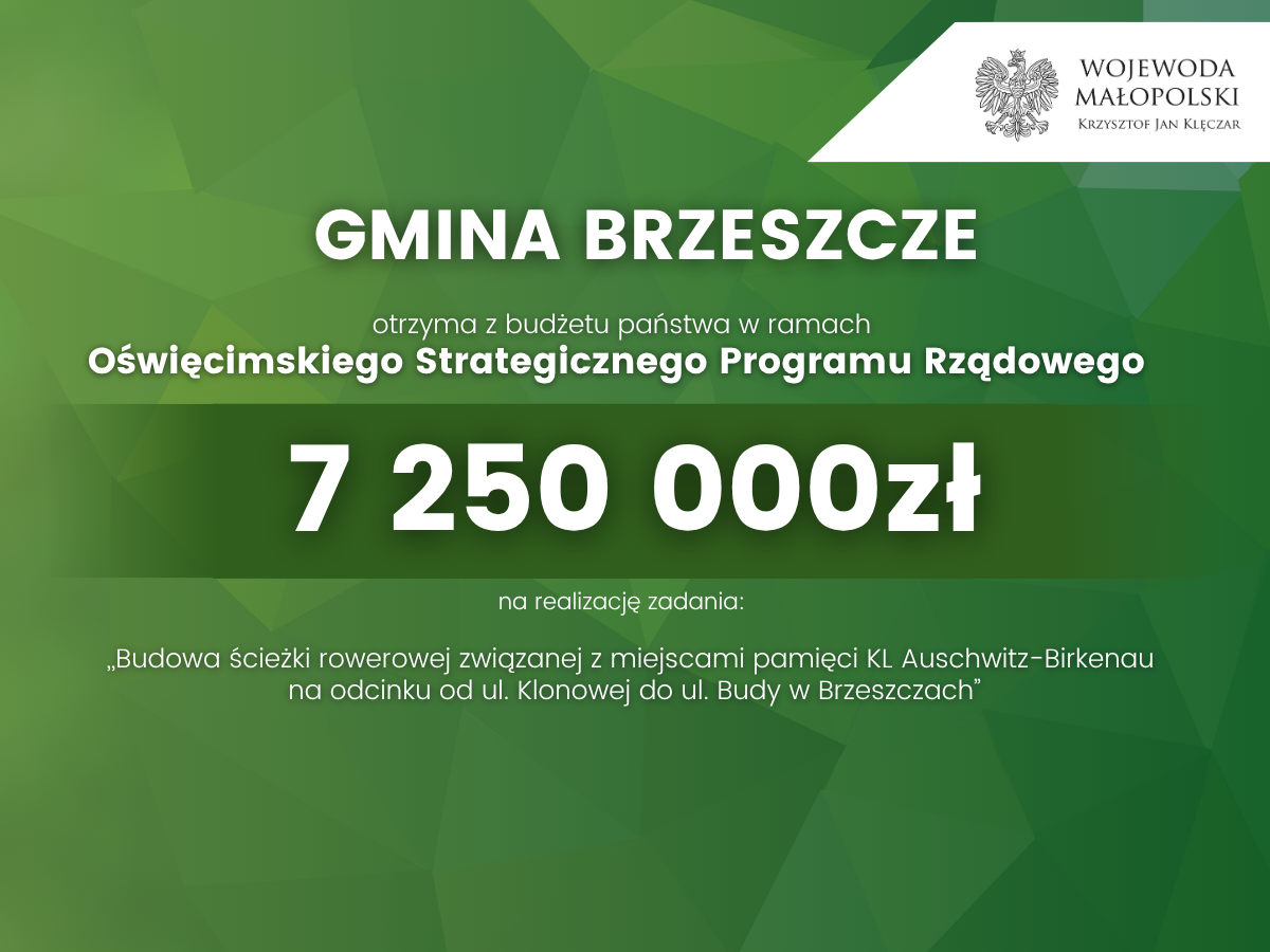 - Budowa ścieżki rowerowej związanej z miejscami pamięci KL Auschwitz-Birkenau na odcinku od ul. Klonowej do ul. Budy w Brzeszczach.