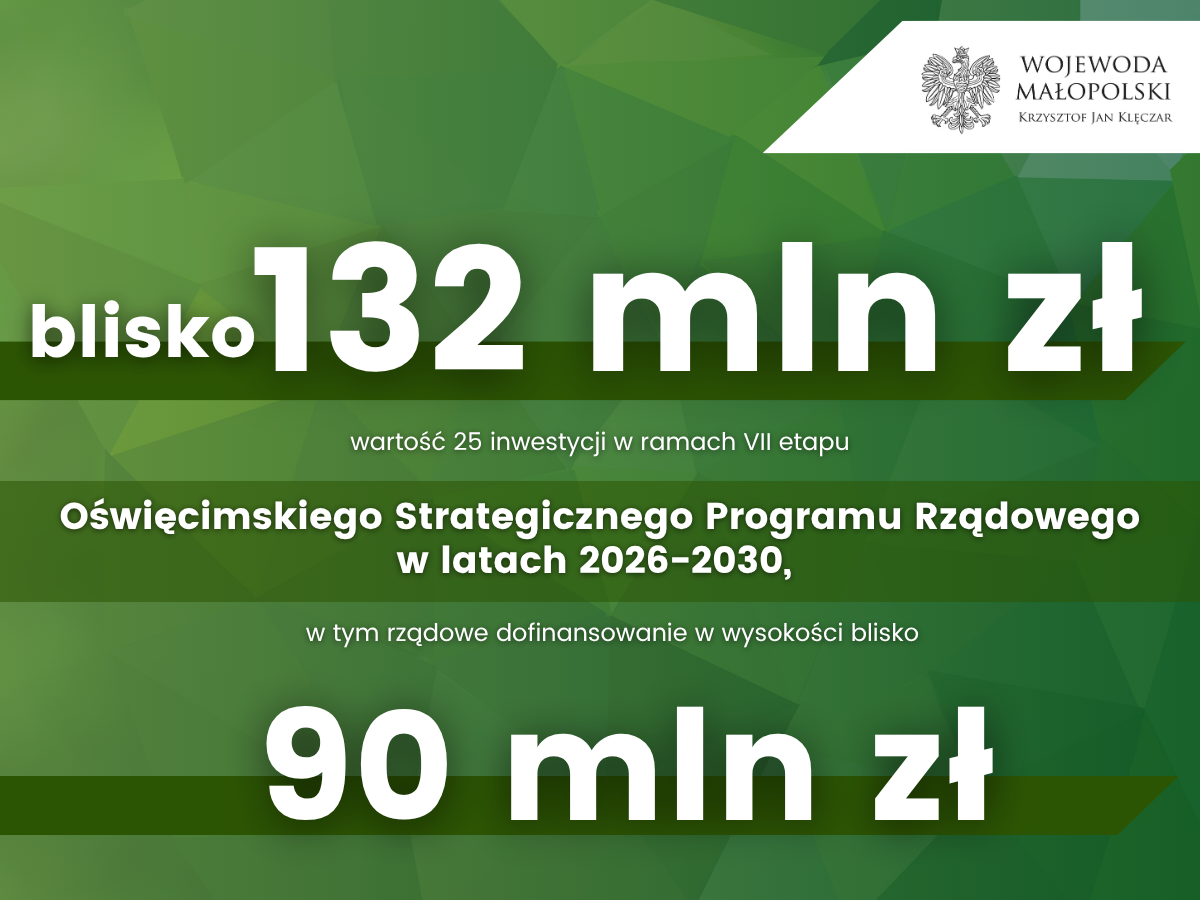 - Auschwitz. Miejsce Pamięci. Ale też miejsce życia. Otaczamy je szczególną troską. W 2024 r. były niemiecki nazistowski obóz koncentracyjny i zagłady odwiedziło ponad 1,83 miliona osób. Ale mieszkańcy ziemi oświęcimskiej chcą żyć tak jak wszyscy. Dlatego, uwzględniając dbałość o miejsca martyrologii i możliwość normalnego funkcjonowania miejscowej społeczności, Oświęcimski Strategiczny Program Rządowy będzie kontynuowany. Rada Ministrów w maju przyjęła uchwałę ustanawiającą jego etap VII na lata 2026-2030. W ramach tej edycji, w ciągu 5 lat, rząd przekaże samorządom blisko 90 mln zł na inwestycje. Wraz z nakładami beneficjentów możemy mówić o projektach o wartości na poziomie łącznie prawie 132 mln zł – mówi wojewoda małopolski Krzysztof Jan Klęczar.