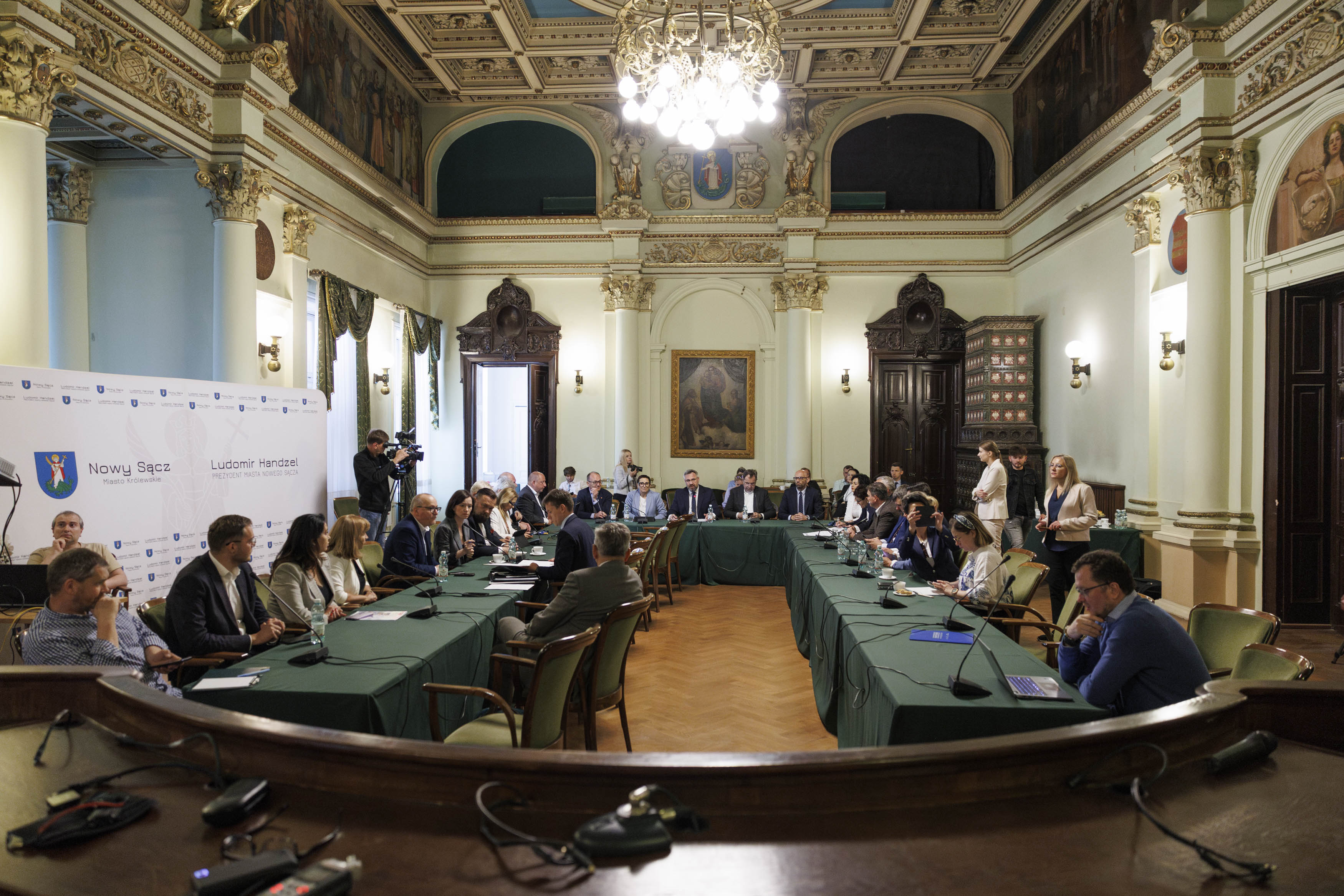 Inwestycje kolejowe w Małopolsce ze szczególnym uwzględnieniem budowy linii kolejowej „Podłęże – Piekiełko” oraz modernizacja linii kolejowej nr 104 Nowy Sącz – Chabówka. To główny temat wyjazdowego posiedzenia sejmowej Komisji Infrastruktury, które odbyło się w sali posiedzeń im. Stanisława Małachowskiego w Urzędzie Miasta w Nowym Sączu. Udział w nim wzięli, tworzący komisję posłowie, a także wojewoda małopolski Krzysztof Jan Klęczar. Obecny był także dyrektor Biura Wojewody Łukasz Krzysztofik.