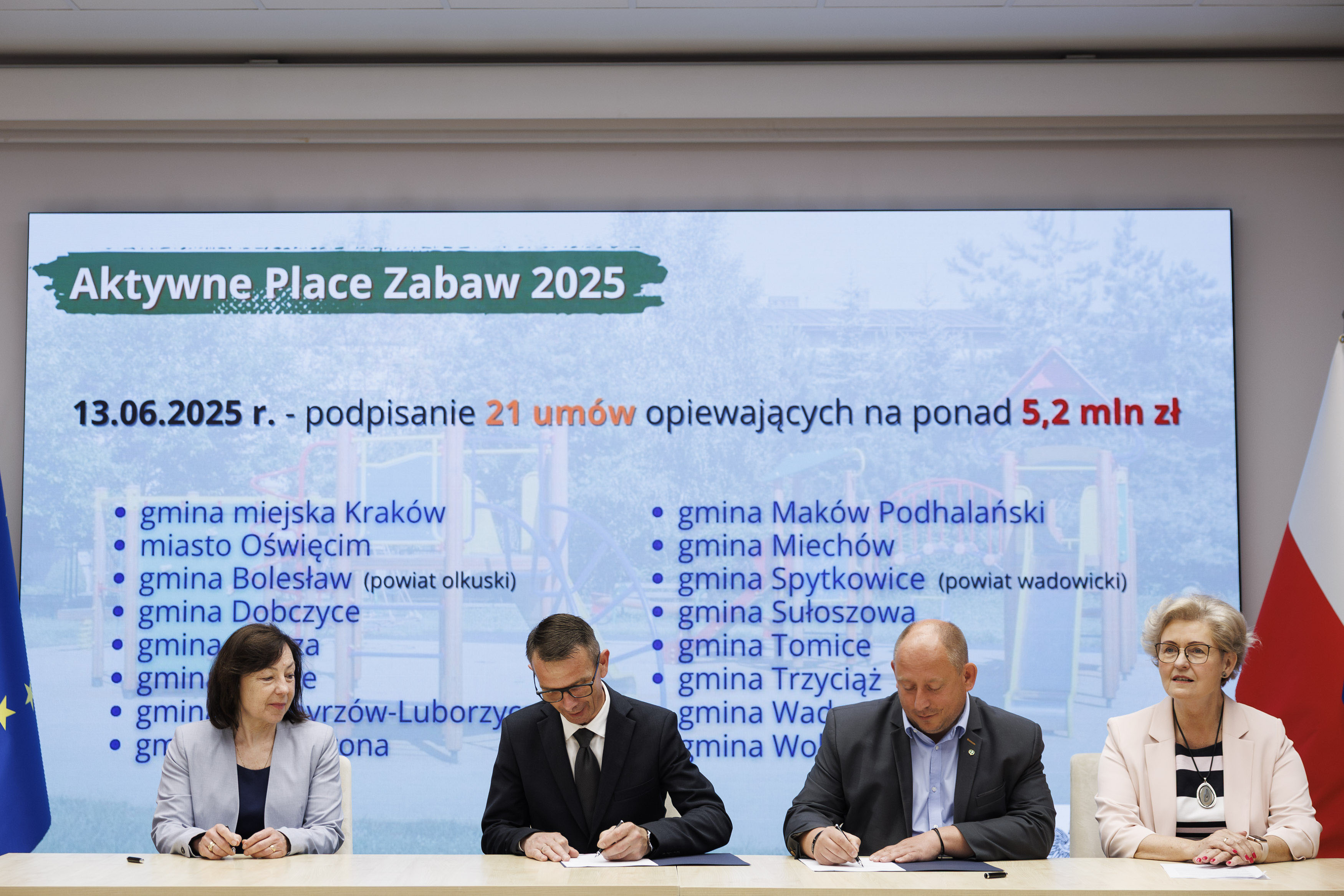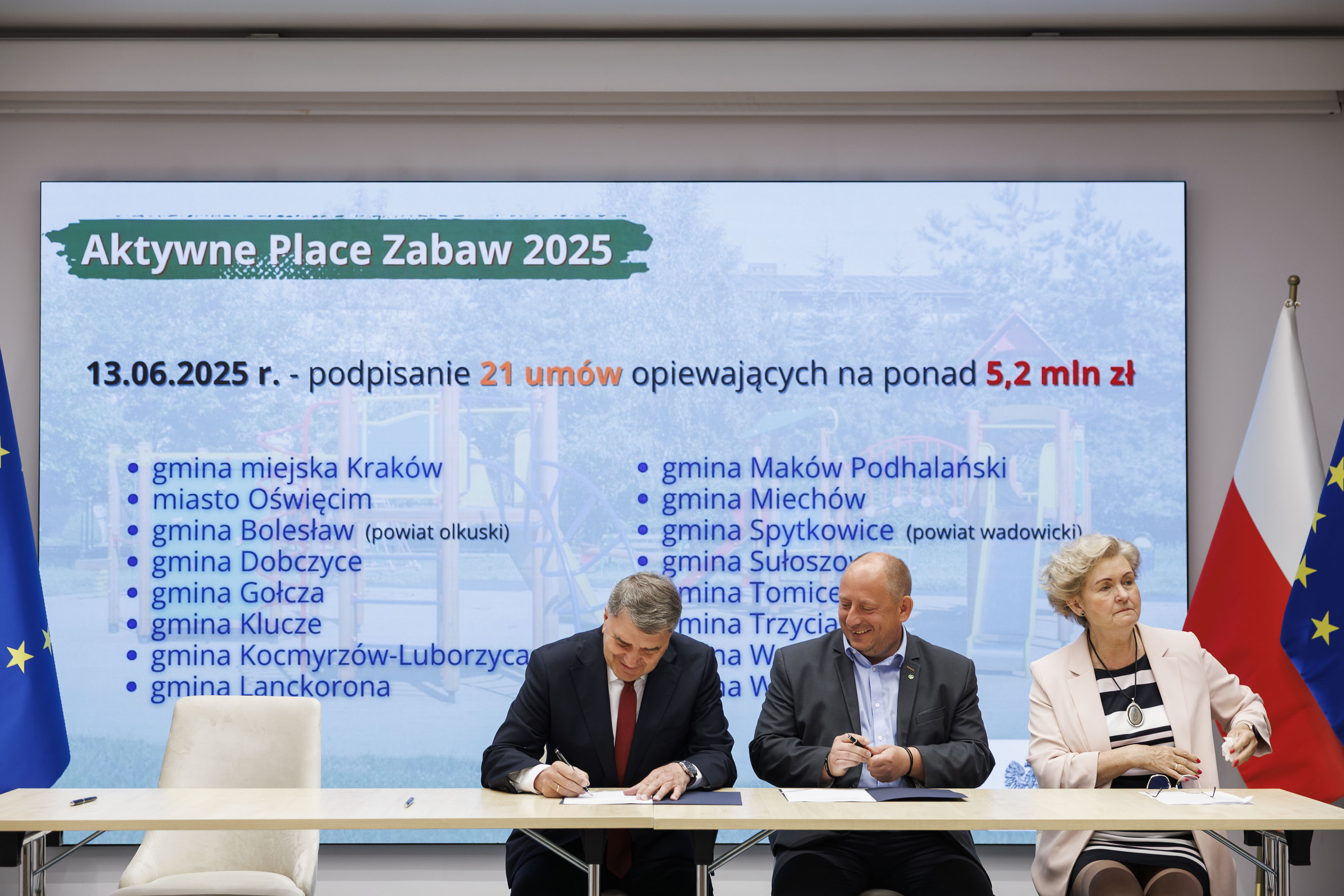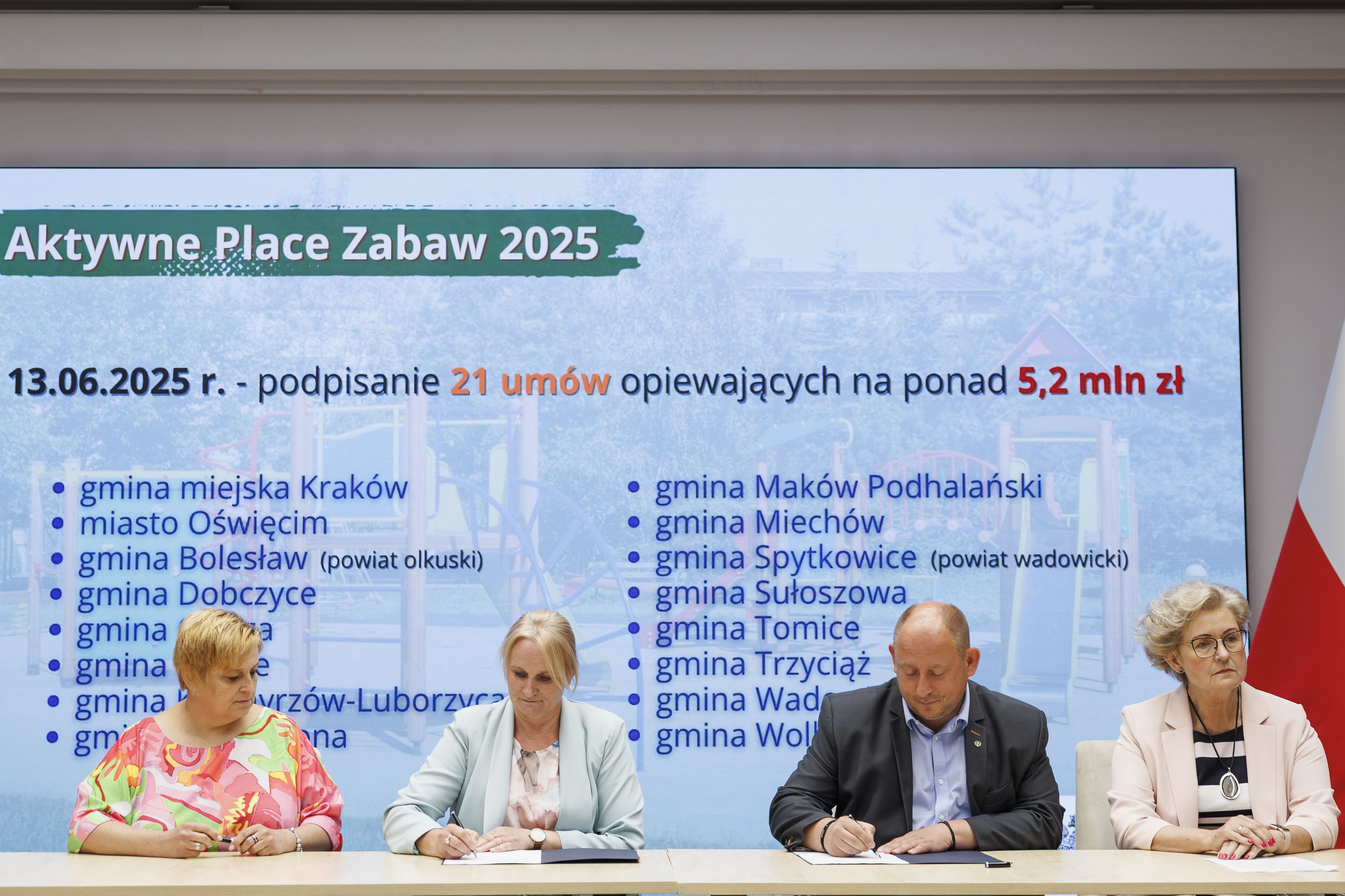 – Podpisujemy dziś umowy, które są początkiem wielu dobrych zmian. Już niedługo zobaczymy efekty tych działań w postaci tętniących życiem, kolorowych i bezpiecznych placów zabaw. Cieszę się, że tak wiele samorządów zgłosiło się do tego nowego Programu. Razem możemy więcej – zwłaszcza w trosce o dobro najmłodszych – mówi wicewojewoda małopolska Elżbieta Achinger.