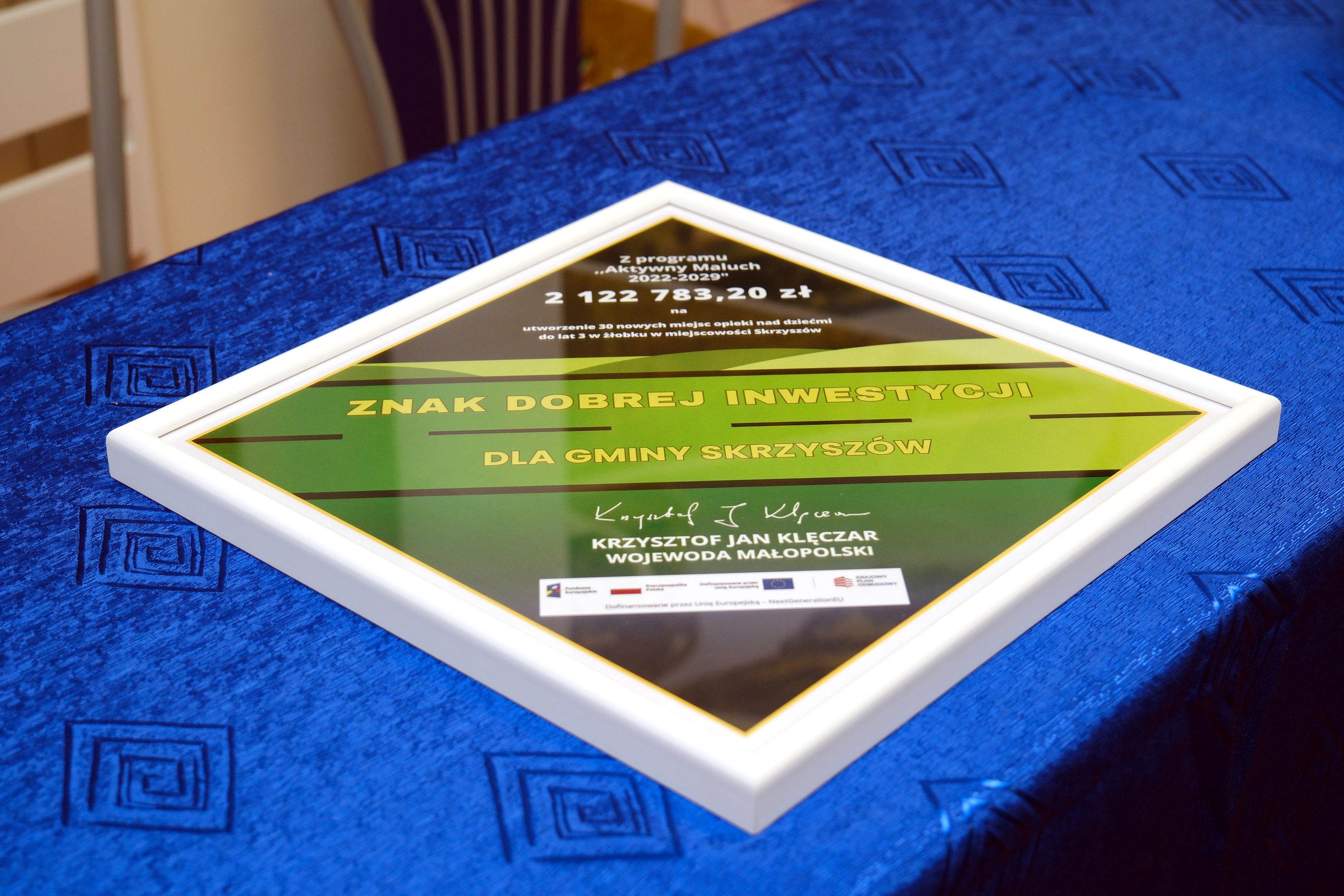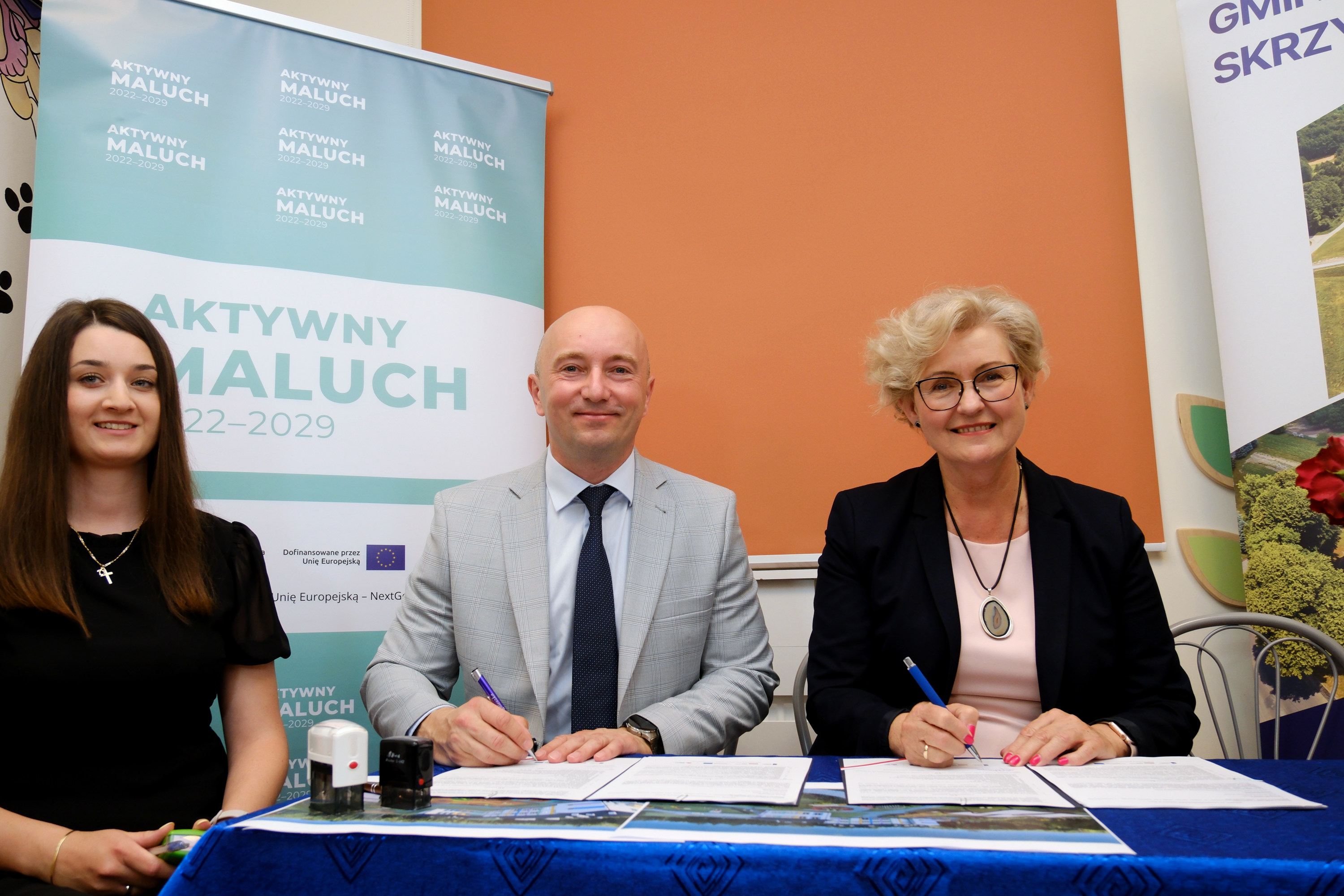 Podczas spotkania w Gminnym Żłobku w Skrzyszowie I wicewojewoda małopolska Elżbieta Achinger podpisała umowę z wójtem gminy Skrzyszów Marcinem Kiwiorem. Obecna była także posłanka Urszula Augustyn.