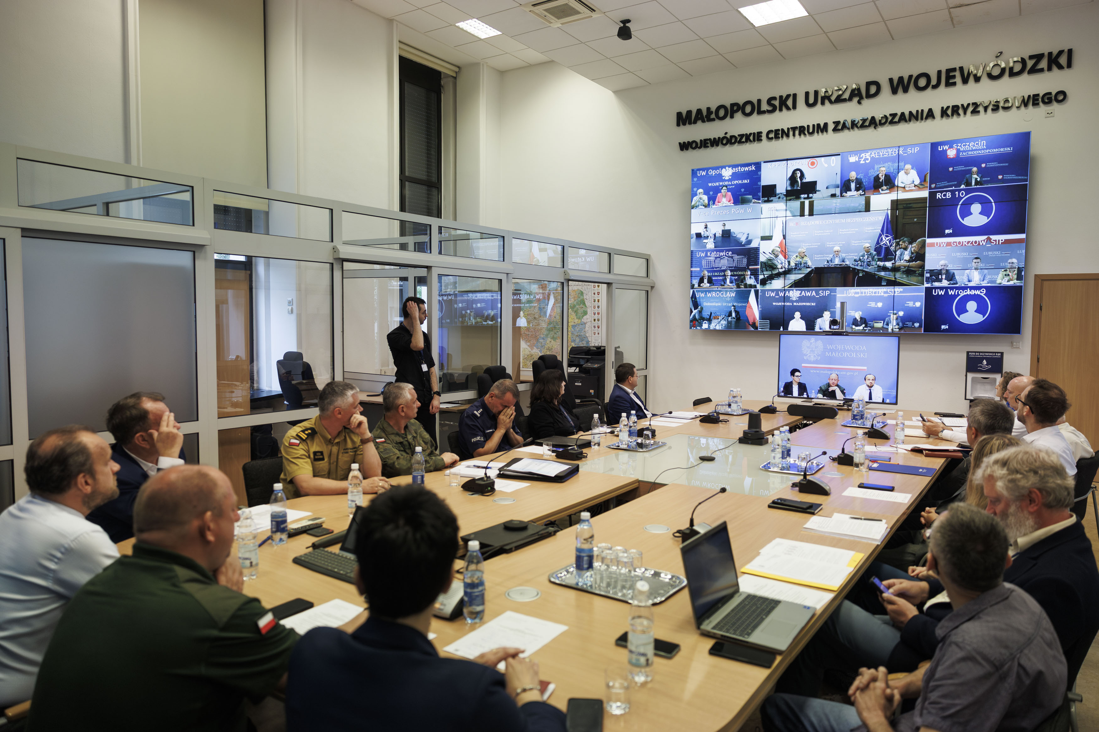 Obecni byli wojewoda małopolski Krzysztof Jan Klęczar oraz II wicewojewoda małopolski Ryszard Śmiałek. Sytuacja w Małopolsce została również omówiona na doraźnym posiedzeniu Wojewódzkiego Zespołu Zarządzania Kryzysowego, które odbyło się przed wideokonferencją.