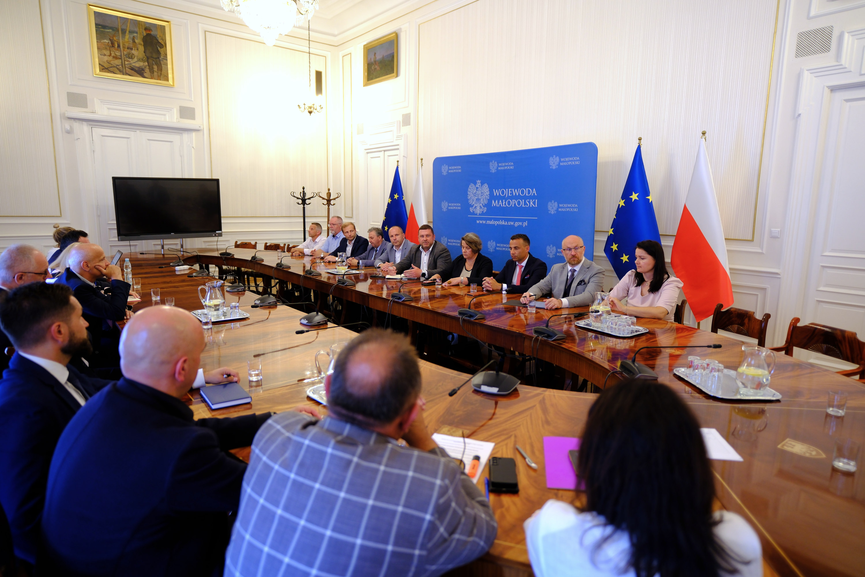 Wojewoda małopolski Krzysztof Jan Klęczar spotkał się dziś z przedstawicielami gmin powiatu krakowskiego. Tematem dyskusji była uchwała Rady Miasta Krakowa w sprawie ustanowienia Strefy Czystego Transportu. Samorządowcy wyrażają swoje wątpliwości wobec tego rozwiązania. W spotkaniu uczestniczył także dyrektor Biura Wojewody Łukasz Krzysztofik.