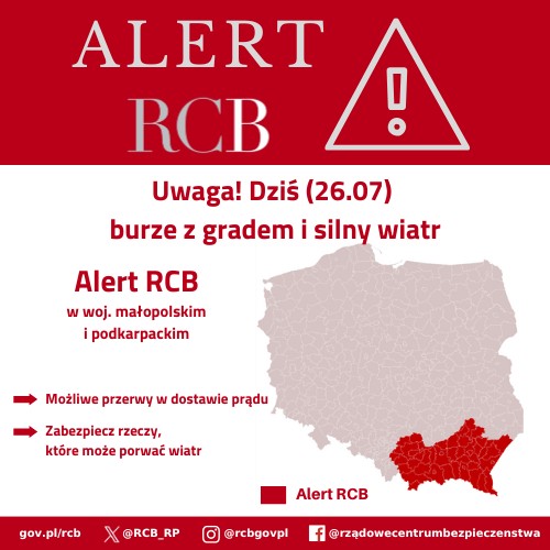 Dlatego też wojewoda małopolski Krzysztof Jan Klęczar wystąpił o nadanie alertów RCB dla województwa.