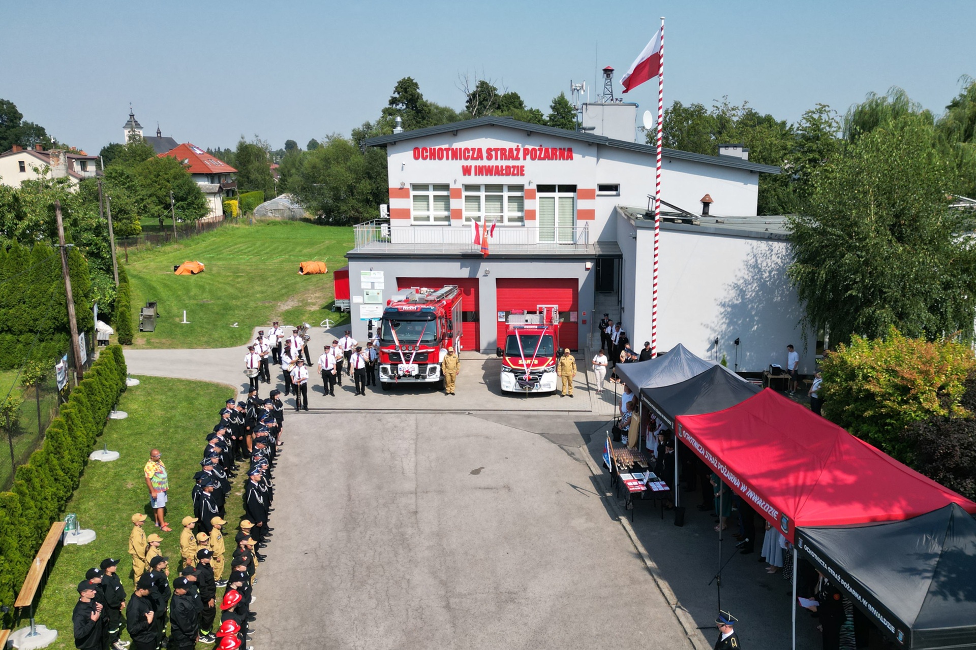 Uroczystości rozpoczęły się przemarszem do Sanktuarium Narodzenia NMP w Inwałdzie, gdzie odbyła się polowa msza święta, poświęcenie samochodów i proporca MDP. Następnie zebrani udali się pod OSP Inwałd. Tam uroczyście przekazane zostały lekki samochód ratownictwa technicznego z modułem gaśniczym Renault Master oraz średni samochód ratowniczo-gaśniczy Volvo FL 280. Podczas zbiórki nadano także proporzec Młodzieżowej Drużynie Pożarniczej OSP Inwałd.