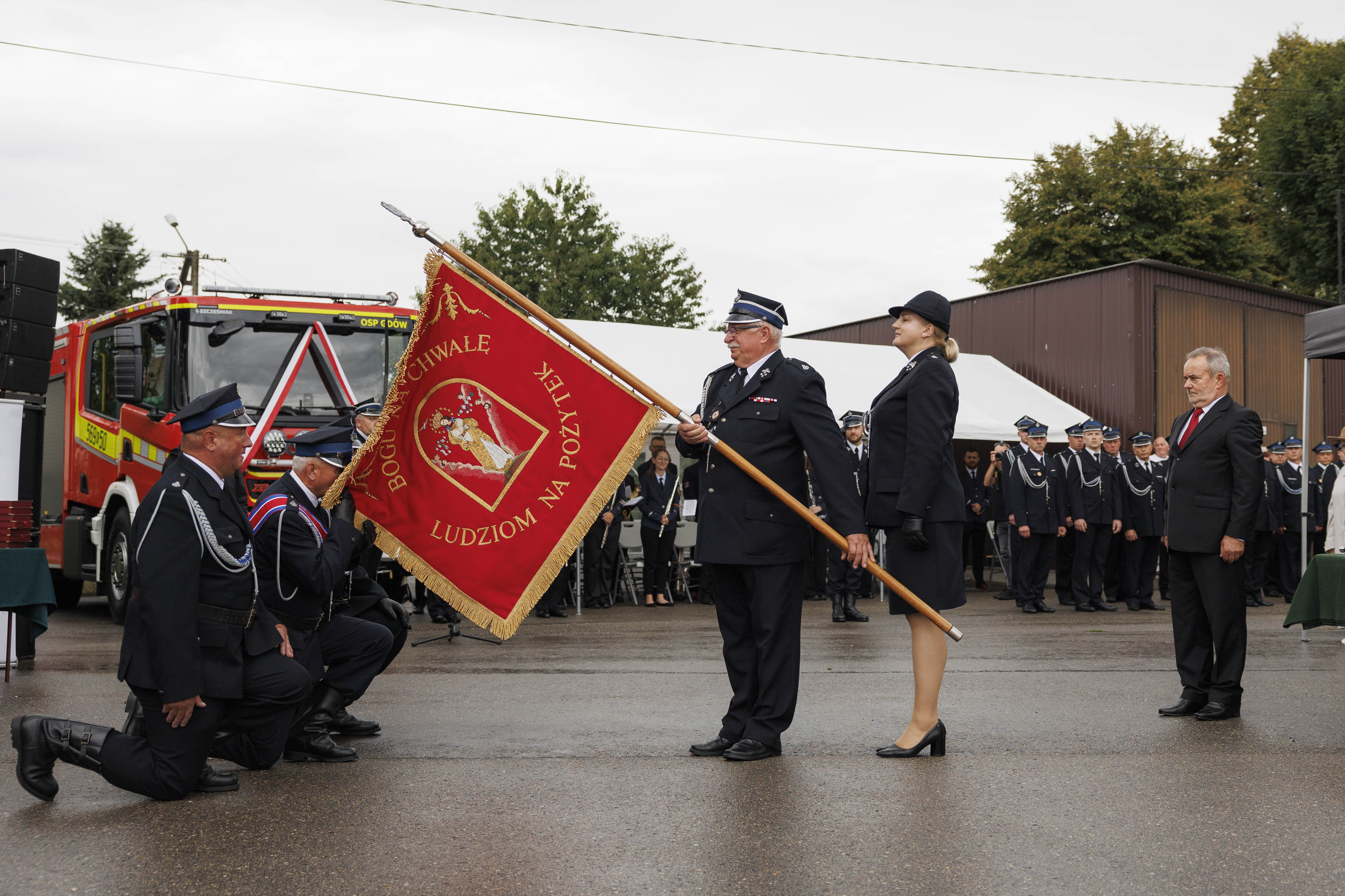 Przekazane i poświęcone zostały nowy sztandar OSP i proporzec dla Młodzieżowej Drużyny Pożarniczej. Jednostka zyskała także nowy średni samochód ratowniczo-gaśniczy marki SCANIA o wartości 1,6 mln zł, który zastąpi wysłużony już pojazd marki MAN z 2009 r.