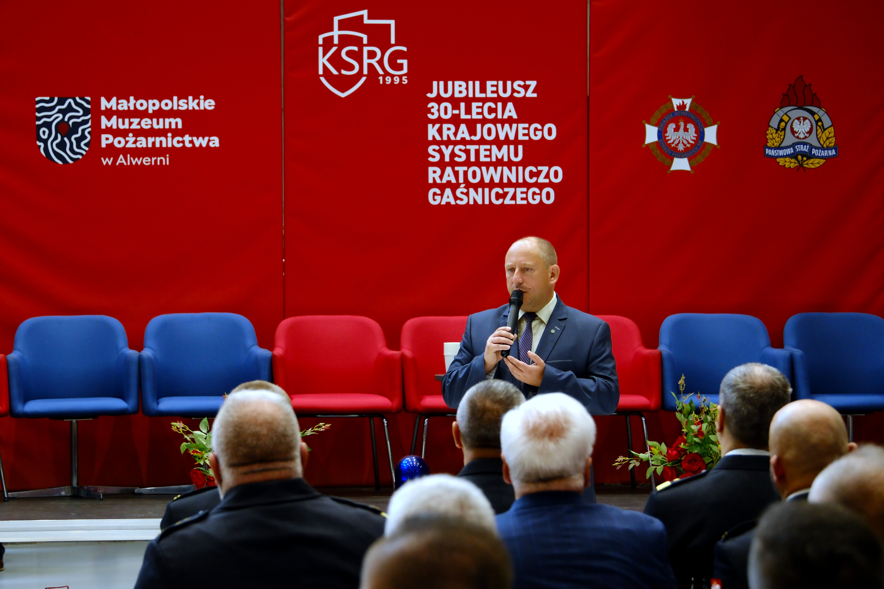 Dzisiaj z okazji jubileuszu 30-lecia KSRG w Muzeum Pożarnictwa w Alwerni odbyły się uroczystości. W wydarzeniu udział wziął wojewoda małopolski Krzysztof Jan Klęczar. Obecni byli także małopolski komendant wojewódzki Państwowej Straży Pożarnej w Krakowie st. bryg. Przemysław Przęczek, komendant Szkoły Aspirantów PSP w Krakowie nadbryg. Piotr Filipek, prezes Zarządu Oddziału Wojewódzkiego Związku OSP RP Edward Siarka oraz marszałek województwa małopolskiego Łukasz Smółka.